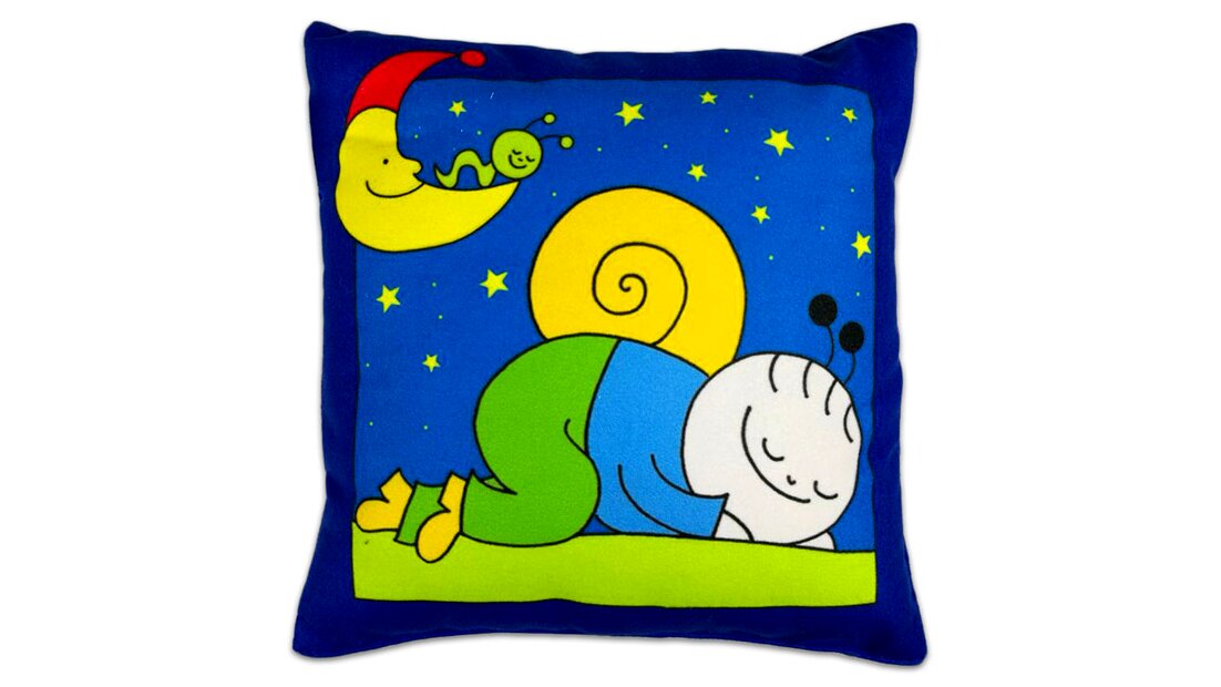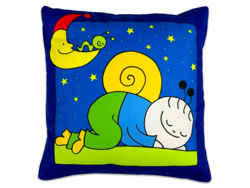 Helyezd magad kényelembe a Bogyó és Babóca mesefilmből megismert csigáról, Bogyóról mintázott díszpárnával! A párna elején kedvenc mesehősöd láthatod, miközben alszik. A párna felületi mosással tisztítható, mosógépbe nem rakható. A párnahuzat anyaga: 100% poliészter, töltőanyag: szálbunda. Minősége: I. osztály. Mérete: 28 x 26 cm.
