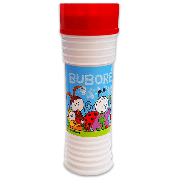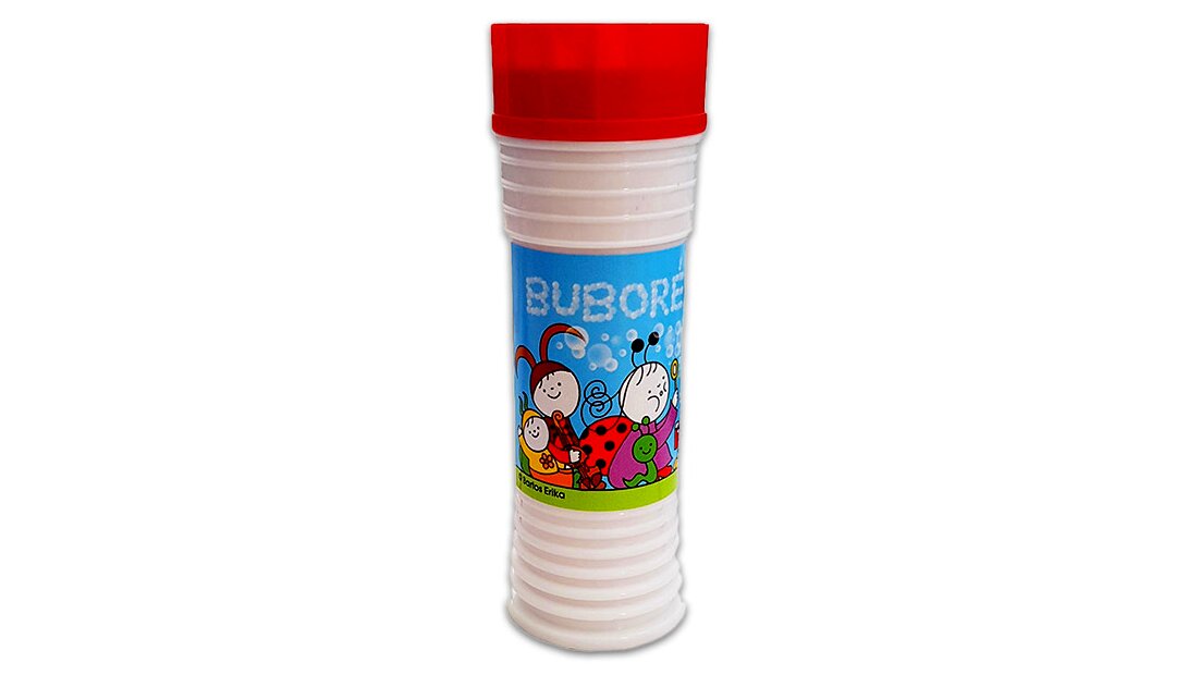 A játékkal gyönyörű, színes buborékokat lehet fújni, ráadásul a flakon tetején egy kis játék is található.