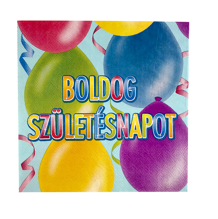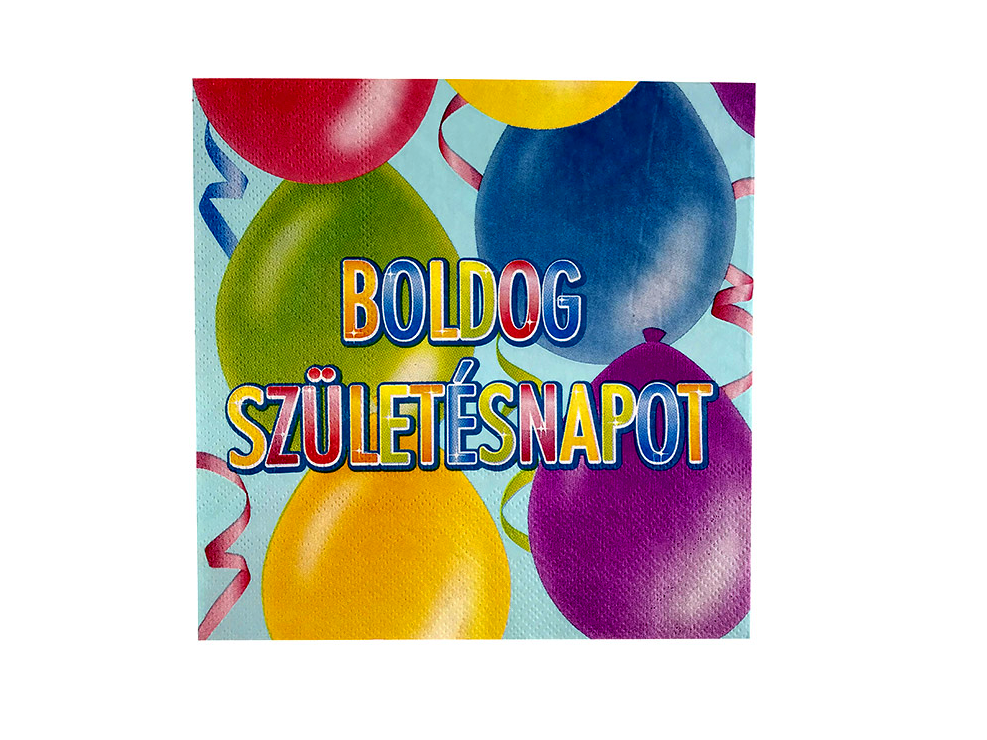 Boldog születésnapot feliratos szalvéta. A csomagolás 20 db szalvétát tartalmaz.