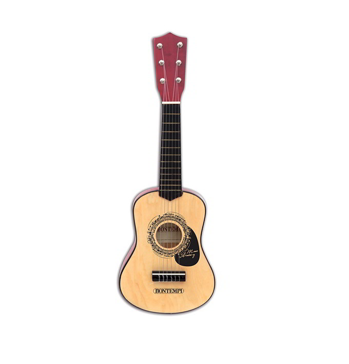 Bontempi 6 húros, klasszikus fa gitár. A gitár hangolható, hangzása valóságos. A csomagolás tartalmaz egy hangjegyfüzetet és egy pengetőt is. Csomagolási méretek: 56 x 22 x 7 cm.