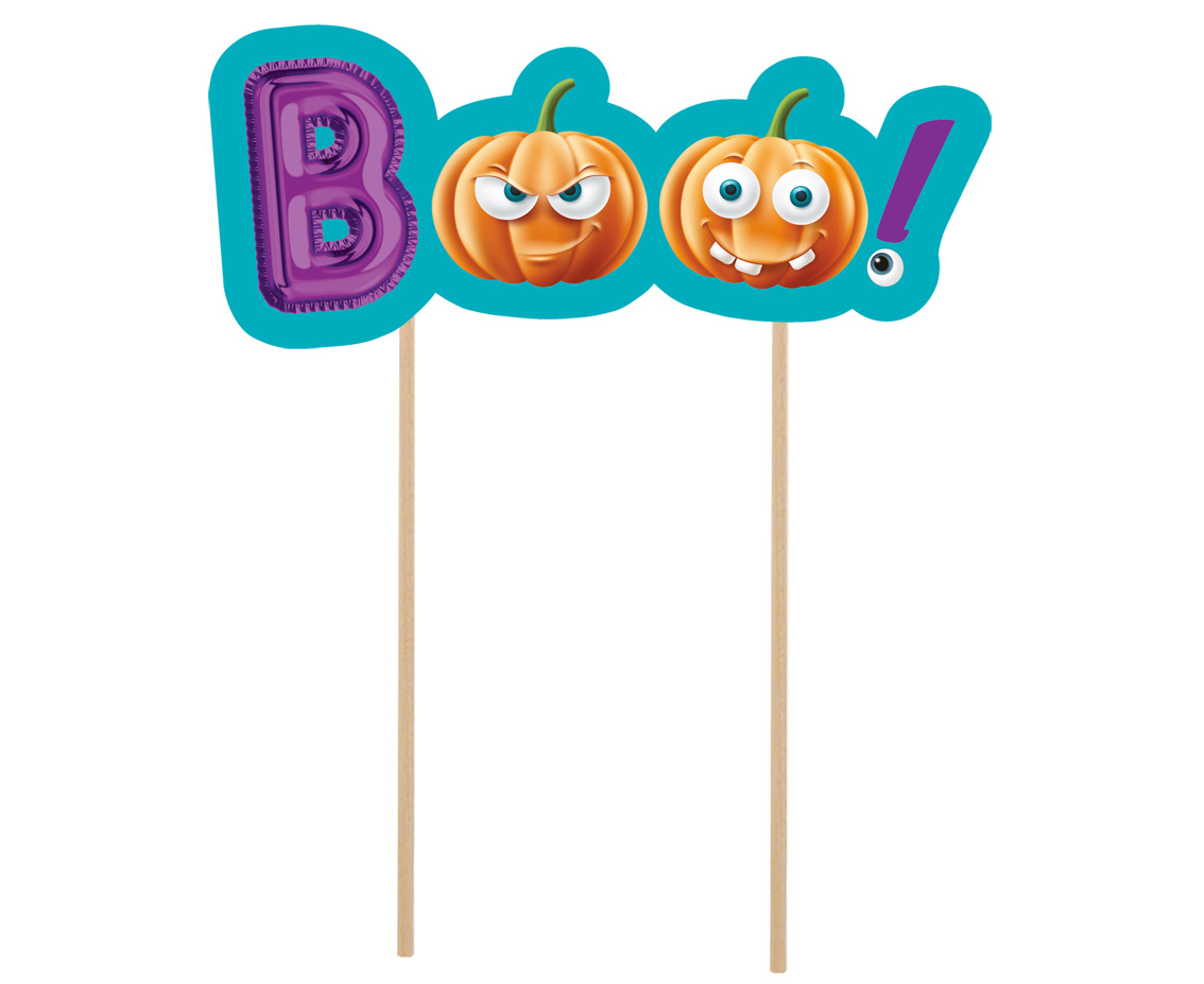 A Boo! Halloween tortadíszek papírból készülnek és vidám sütőtökök képeivel díszítettek, hogy még izgalmasabbá tegyék az ünnepi asztalt. A dísz mérete 18 x 15 cm, amely ideális méret a legtöbb tortához és süteményhez.