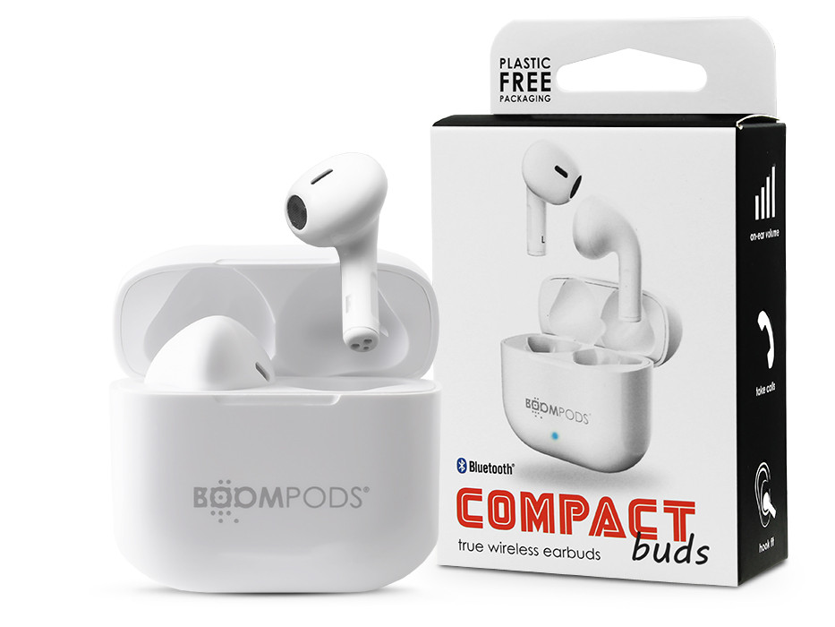 - Boompods Compact vezeték nélküli fülhallgató integrált hangerőszabályzóval rendelkezik.
