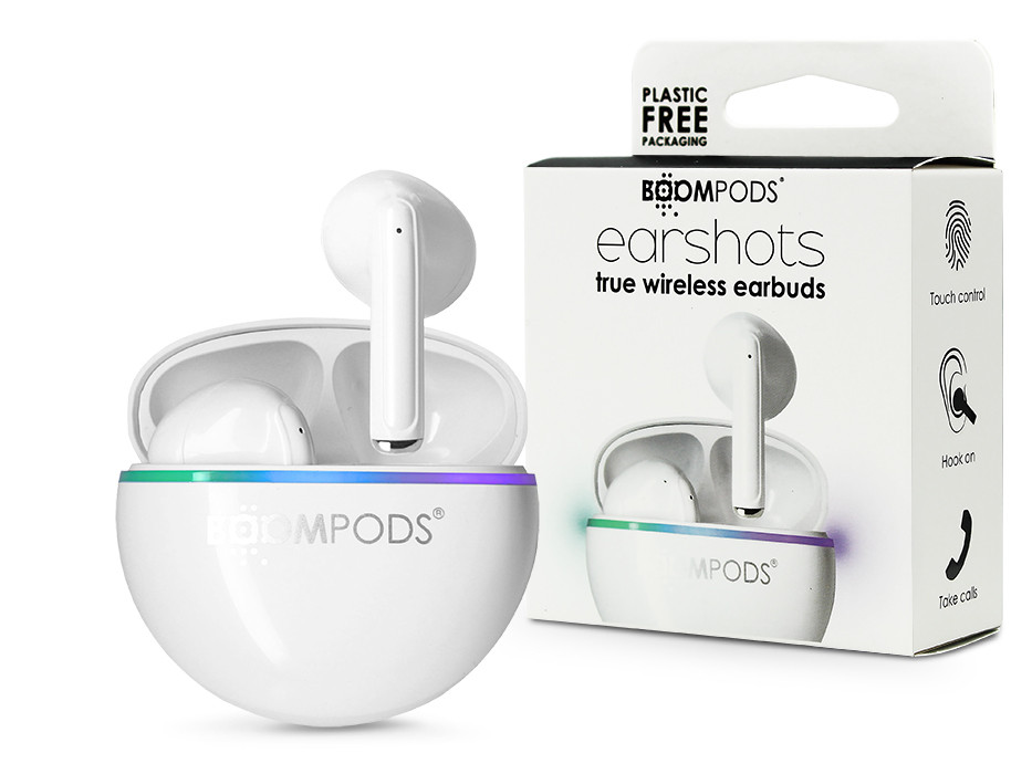 - Bemutatjuk Boompods EarShots TWS fülhallgatót, amely a tokján található szórakoztató LED-fényekkel világít.