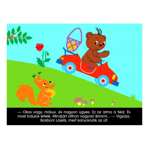 A családi diafilmezés mindannyiunk számára örök emlék marad! Ezt a régi és kedves szokást szeretné tovább vinni a Boribon autózik diafilm. Közkívánatra újabb Boribon-mese került diafilmre, melyben kedvenc játékmackónk almás pitét enne. Sütne is neki Annipanni, de nincsen otthon alma. Ezért Boribon autóba pattan, és elindul almát szedni. A kedves történetet írta és rajzolta Marék Veronika.
