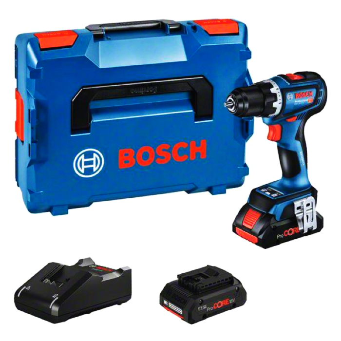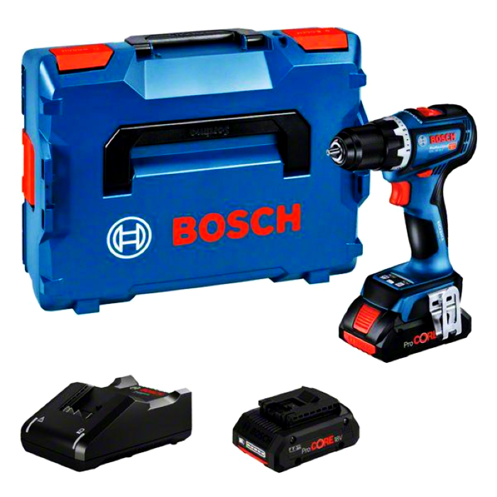 A Bosch GSR 18V-90 C Professional akkumulátoros fúrógép egy nagy teljesítményű akkumulátoros fúrógép kefe nélküli motorral, amely 64 Nm-rel és 2100 fordulat/perc fordulatszámmal nyújt csúcsteljesítményt. A robusztus 13 mm-es fém gyorsbefogó tokmány kiváló nyomatékátvitelt biztosít minden munkához, a kompakt, mindössze 163 mm-es fejhossz pedig tökéletes kézreállóságot biztosít. A GSR 18V-90 C Professional fúrógép kiváló szerszámvezérlést tesz lehetővé a nagyobb felhasználó- és szerszámvédelem érdekében: a HMI állítható KickBack Control funkciót kínál, amely csökkenti a visszarúgás kockázatát a szerszám elakadása és a szerszám hirtelen forgása esetén. Az állítható precíziós tengelykapcsoló funkció megakadályozza a túlhúzást, ha az előre beállított nyomatékot elérte, csökkentve ezzel a tengelykapcsoló kopását és a zajszintet. Az ütvefúrógép adatai és beállításai átvihetők az elektromos szerszám és az okostelefon között, ha a Bluetooth Low Energy modul GCY 42 van telepítve. A GSR 18V-90 C Professional fúrógép alkalmas fa, fém, kerámia és műanyag fúrására. Praktikus övcsipesszel is rendelkezik, amellyel az akkumulátoros csavarhúzó kényelmesen felakasztható az övre vagy a létrára. Az ajánlatban két ProCORE18V 4.0Ah újratölthető akkumulátor található, amelyek a legújabb cellatechnológiának köszönhetően ugyanazt a teljesítményt nyújtják, mint a hagyományos 4Ah-s akkumulátorok, de lényegesen kisebb méretekkel, kisebb súllyal és 135%-kal hosszabb élettartammal, mint a hagyományos akkumulátorok - a COOLPACK 2.0 technológiának köszönhetően, amely megakadályozza az akkumulátor túlmelegedését.