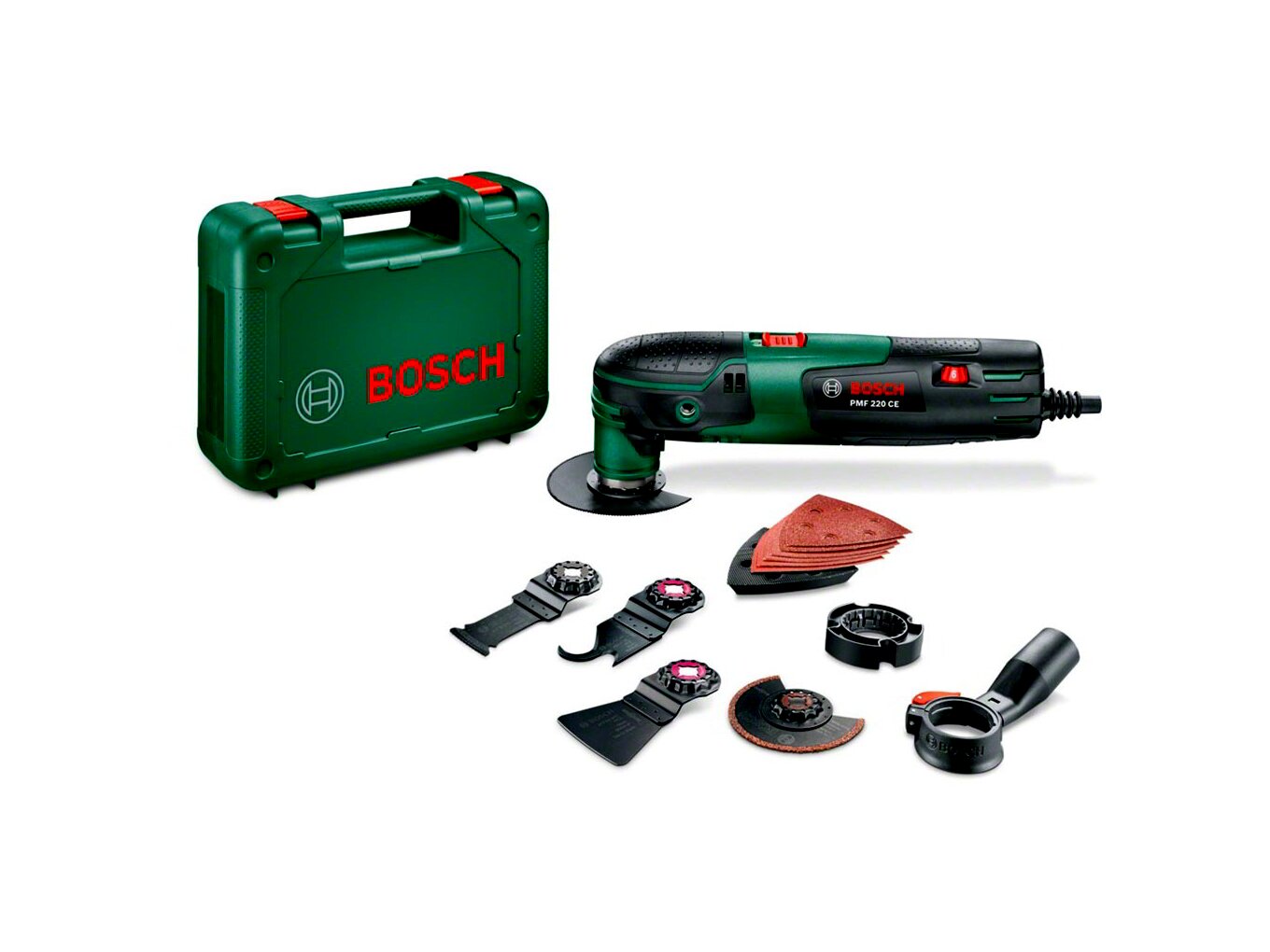 Ez a készlet a Bosch PMF 220 CE multifunkciós szerszámot és egy nagy Starlock betétes szerszámkészletet tartalmaz csiszoláshoz, kaparáshoz és fűrészeléshez. A PMF 220 CE multifunkciós szerszám nélkülözhetetlen segítője minden felújítási és javítási munkának. A Bosch Constant Electronic 220 wattos erős motorja és az oszcillációs sebesség fokozatmentes előválasztása gyors munkavégzést és az anyaghoz való optimális alkalmazkodást tesz lehetővé. A Starlock szerszámtartóval és a külön kapható tartozékok széles választékával a PMF 220 CE rendkívül rugalmasan használható. A Bosch MagnetHold rendszer, a mágneses szerszámtartó segít a tartozékok könnyed cseréjében.
