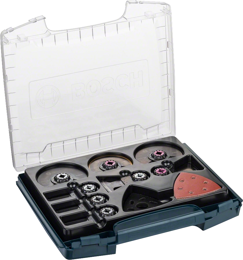 - Készlet Starlock tartozékokkal, különféle anyagok fűrészeléséhez, merülővágásához, csiszoláshoz, hántoláshoz, vágáshoz