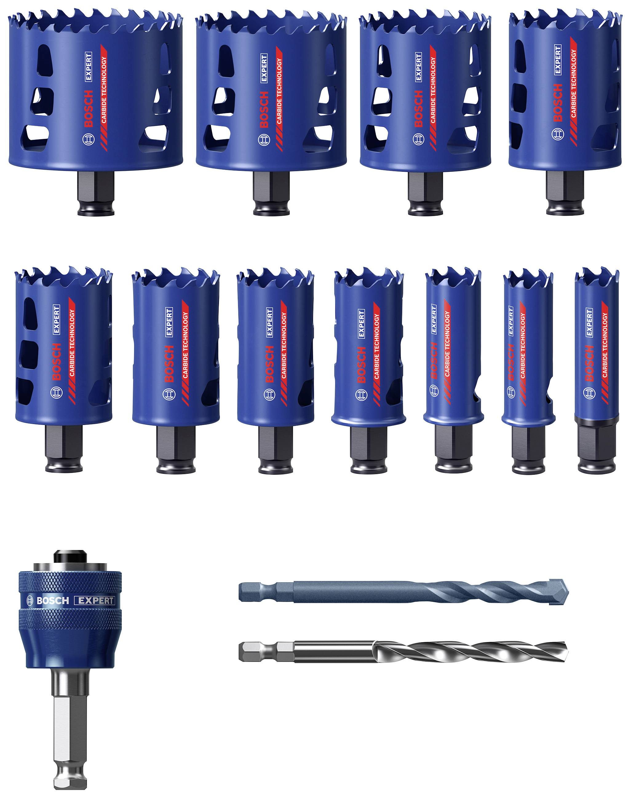 A Bosch 14 darabos Expert "ToughMaterial" lyukfűrészkészlete kiváló szilárdságot és stabilitást biztosít a maximális tartósság érdekében, köszönhetően a finom, kemény kemény keményfémből készült, egyedileg csiszolt fogaknak. Sok lyukfűrész, amely állítólag több anyaghoz is alkalmas, jól működik fában és puha fémben. A kemény csavarok vagy fémszerelvények azonban gyakran megakasztották a felújítási munkálatokat, tönkretették a fűrészfogakat és befolyásolták a termelékenységet. Az Expert "ToughMaterial" lyukfűrészeknek ez nem okoz gondot. Keményfémfogaikkal átvágják a keményített szögekkel vagy csavarokkal ellátott fát, a habarcsmaradványokkal és acélrészekkel ellátott építőfát, a téglát, a puha csempéket, a rozsdamentes acéllemezeket és a műanyagokat. A szabadalmaztatott rés kialakítása jobb láthatóságot és a fúrómag könnyebb kidobását biztosítja. Az Expert "ToughMaterial" lyukfűrészek alkalmasak a Bosch Power Change Plus gyorsfeszítő adapterrel való használatra (a készlet tartalmazza).
