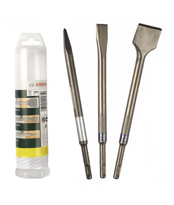 A 3 részes SDS plus vésőkészlet felújítási és javítási munkákhoz biztosít szerszámokat különféle anyagokhoz: egy laposvésőt, egy hegyesvésőt és egy csempevésőt. Az önélező vésők speciális anyagokhoz készültek, anyageltávolítási teljesítményük kiváló, az elakadásuk valószínűsége pedig lecsökkent. A laposvéső erős bordái mind vízszintes, mind függőleges irányban repesztik a betont. A hegyesvéső szerszámvége csavart, így szélesebb sávban távolítja el az anyagot és kevésbé akad el; a csempevéső lapos, szögben álló vágóéle révén képes eltávolítani a teljes csempét törés nélkül. A vésőkészlet betonhoz, téglához és csempéhez is használható. A vésők használhatók az SDS plus vésőtoldattal, vagy közvetlenül is illeszthetők az erőátvitel-megszakításos SDS plus bontókalapácsokba.Termékjellemzők