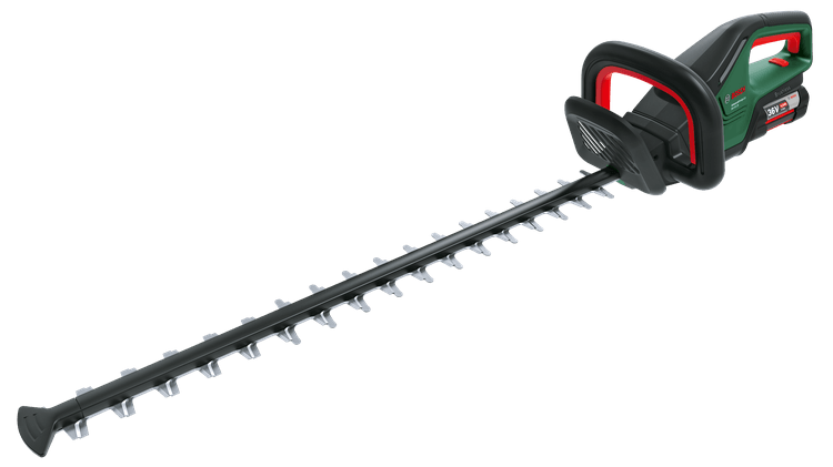 Az akkus AdvancedHedgeCut 36V-65-28 könnyedén elbánik a sűrű sövényekkel és bokrokkal. A szénkefe nélküli motor a nagy teljesítményt ötvözi a maximális hatékonysággal, a kevesebb motorhő pedig hosszabb élettartamot tesz lehetővé. Mivel könnyen kezelhető, ez a szerszám kevésbé terheli meg a kertész hátát, vállait és csuklóját. A svájci gyártmányú késpengék precíz vágást végeznek, míg a Bosch szabadalmaztatott blokkolásgátló rendszere segít elkerülni a megakadást, így folyamatos nyírást és kevesebb leállást biztosít. Ez a mindentudó sövénynyíró minden sövényhez megfelel, akár galagonya, sóskaborbolya vagy kökény sövényhez is, akár 28 mm vastag ágak vágásához is. Ez a szerszám a 36V POWER FOR ALL ALLIANCE rendszer része. Egyetlen akkumulátor minden 36V POWER FOR ALL szerszámhoz.