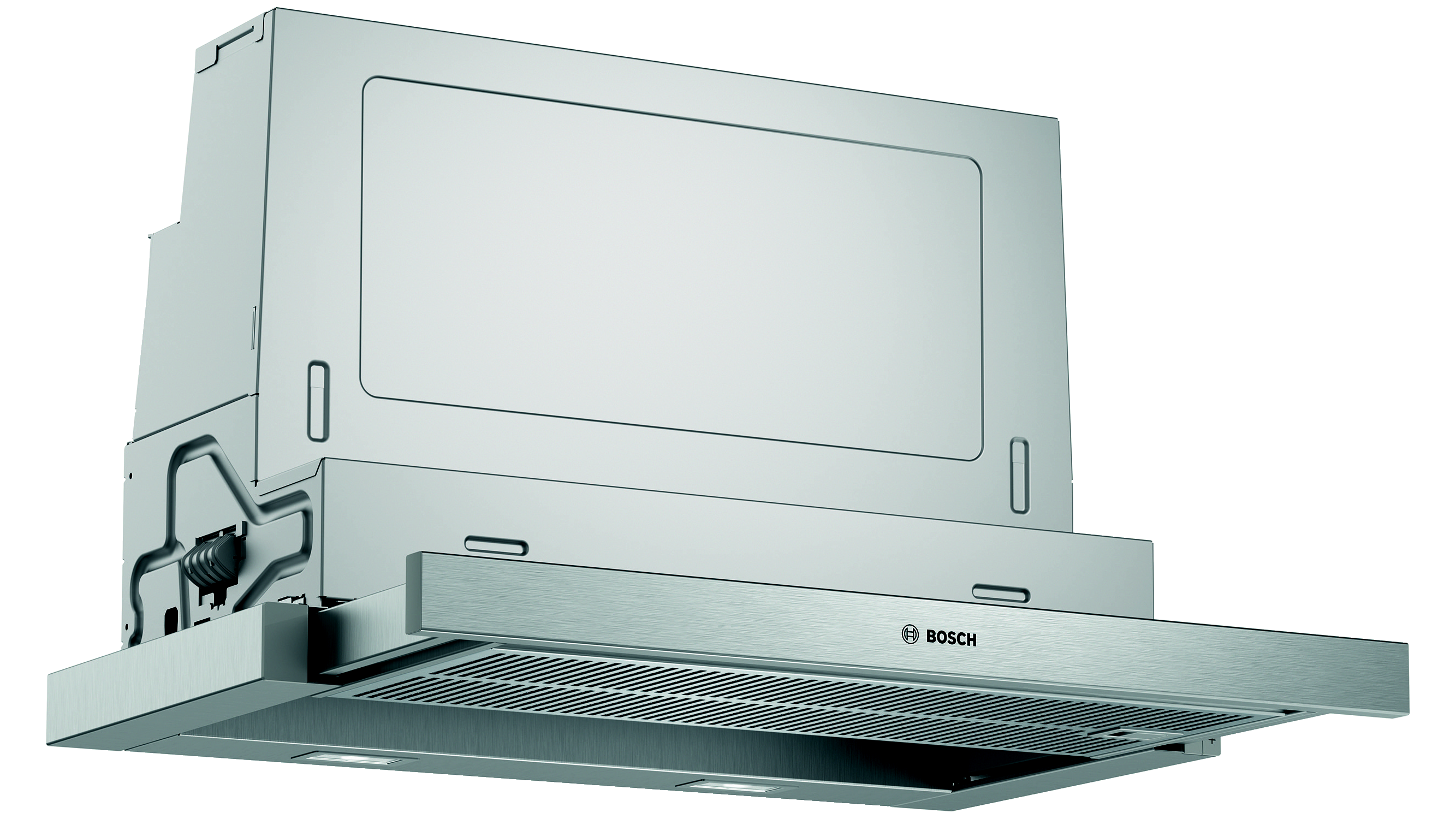 Teleszkópos páraelszívó: alig láthatóra beépíthető a felső szekrénybe, így biztosítva az egységes konyhakialakítást.