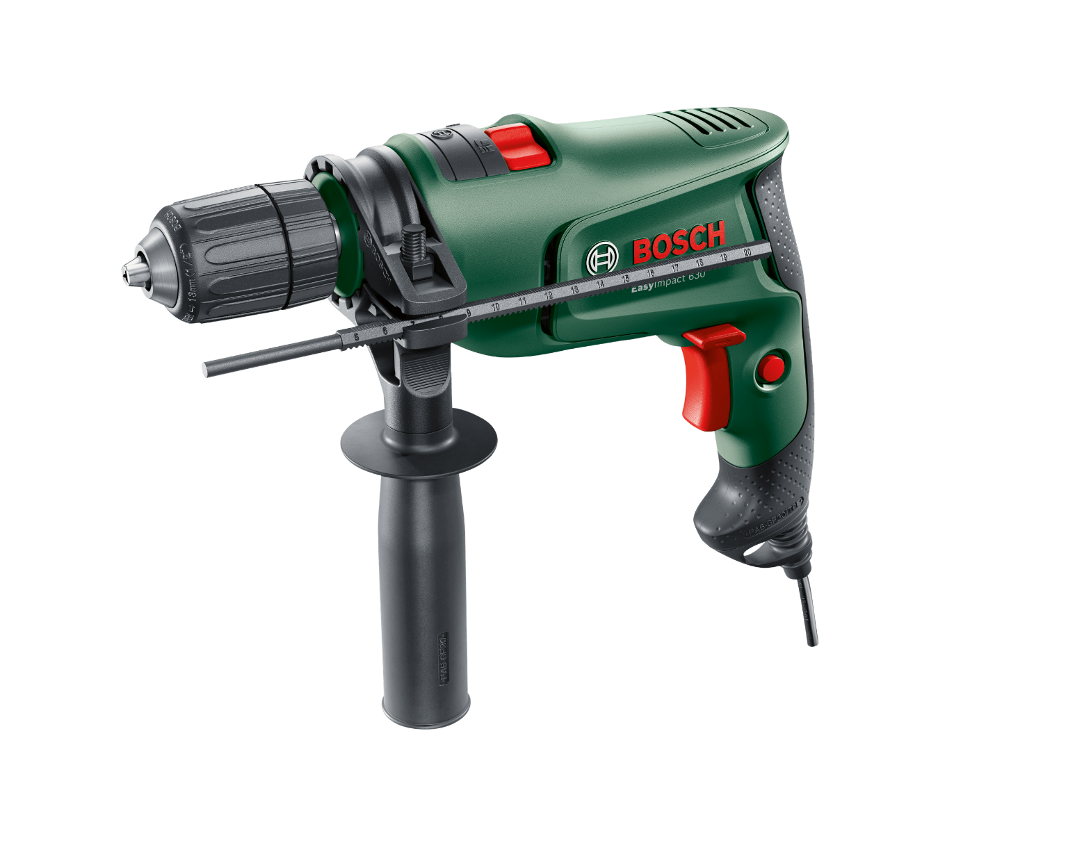 Az EasyImpact 630 kényelmes precíziós fúrást tesz lehetővé falazatban, fában, puha betonban és fémben. A két hüvelyes gyorsfúró tokmány gyors és egyszerű fúrószárcserét biztosít az orsó egyszerű elfordításával. Elektronikus sebességszabályozója lehetővé teszi, hogy a sebességet a gázkapcsolón keresztül az adott anyaghoz igazítsa. Az 1,7 kg-os, könnyű és kompakt szerszám ergonomikus kialakítással lehetővé teszi a könnyed, fej feletti fúrást. A 630 W-os motor megbízható eredményeket biztosít a különböző anyagokban, falazatban akár 13 mm-es, fában pedig 25 mm-es fúrási mélységgel.