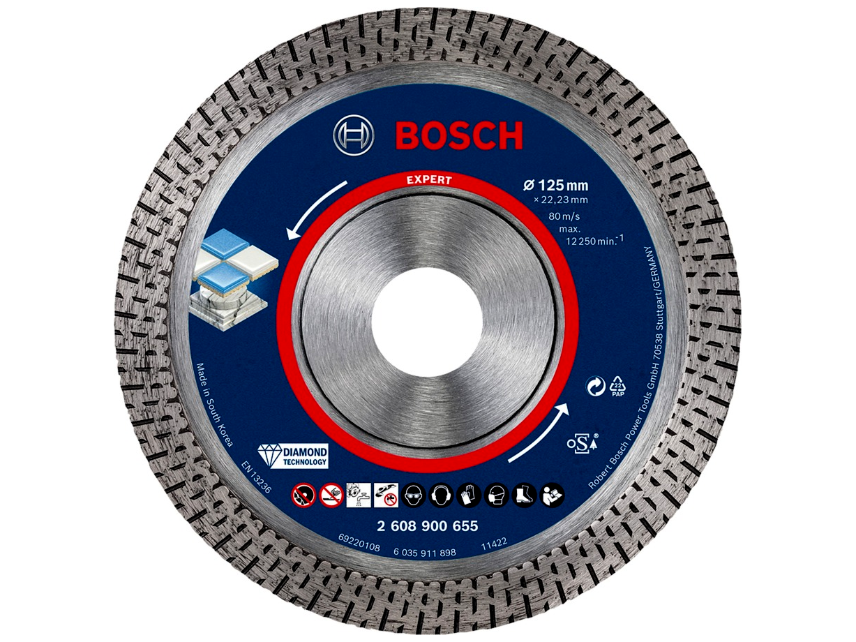 A Bosch "Expert HardCeramic" 2608900655 gyémántvágó tárcsa különösen tiszta vágásokat végez a legkeményebb porcelánban, kemény csempében, kőedényben és finom kőedényben. A modern építkezéseken használt csempék gyakran nagyméretűek, nagyon kemények és drágák. Ezért fontos, hogy minden alkalommal tökéletesen vágjuk őket, még ha ez nehéz is. Az "Expert HardCeramic" gyémánt csempevágó kerék a gyémánt technológiát és az egyedi kialakítást használja, hogy következetesen a legjobb eredményt érje el, még a legkeményebb kerámiákban is. A vékony pengék hatékonyabban vágnak, hűvösebbek maradnak, a megerősített középpont pedig csökkenti a rezgést a tisztább vágás érdekében. A 22,23 mm-es furatátmérővel a szokásos, szorítóanyával ellátott sarokcsiszolókhoz alkalmas.