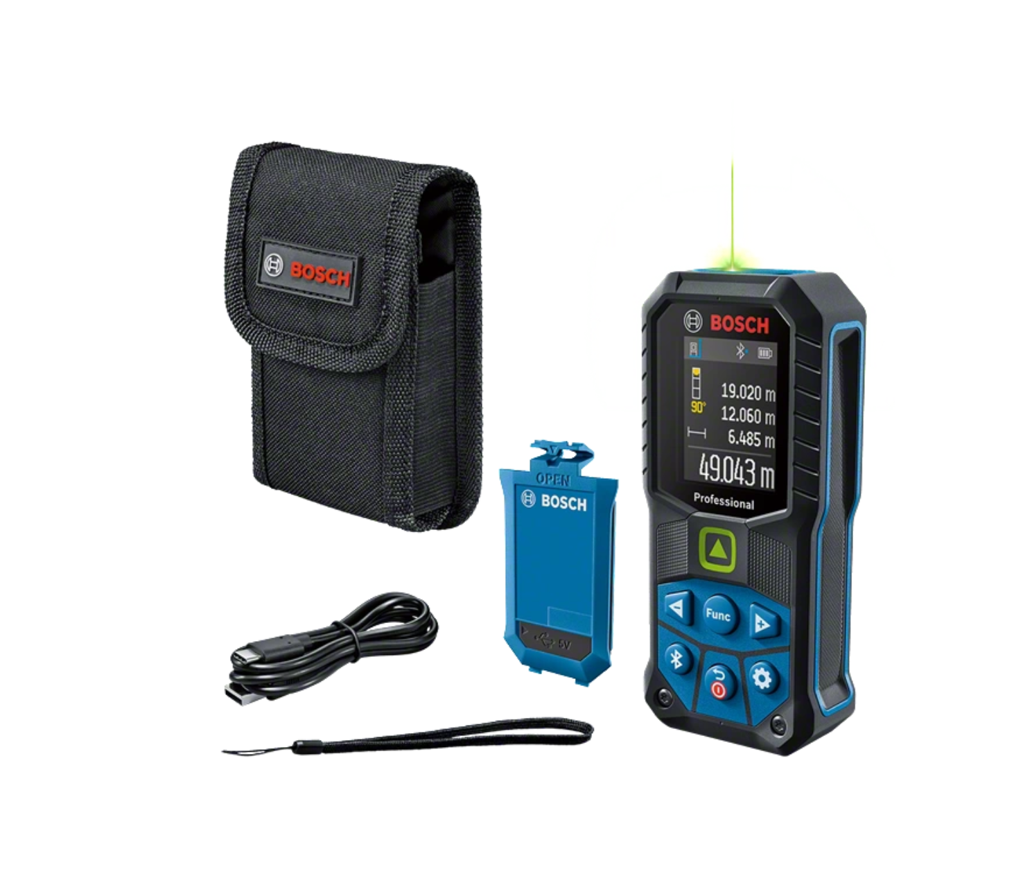 A GLM 50-27 CG Professional lézeres távolságmérő lézerpontja igen jól látható, a kialakítása nagyon ellenálló, a dokumentációt pedig gyorsan elvégzi. A zöld lézerpont jobban látható, mint a piros lézer, különösen a nagy távolságú méréshez megfelelő világos beltéri környezetben. Az IP65 védettségű kialakítás és az ütést elnyelő gumi tokozás kombinációjának köszönhetően ellenáll az 1,5 m magasból betonra történő leesésnek, valamint a durva munkahelyi körülményeknek. A Bluetooth® csatlakozási lehetőség és a Bosch MeasureOn applikáció gyors dokumentációt és a mérési eredmények pillanatok alatt történő átvitelét teszik lehetővé.- A zöld lézer technológia kiválóan látható világos beltéri körülmények között