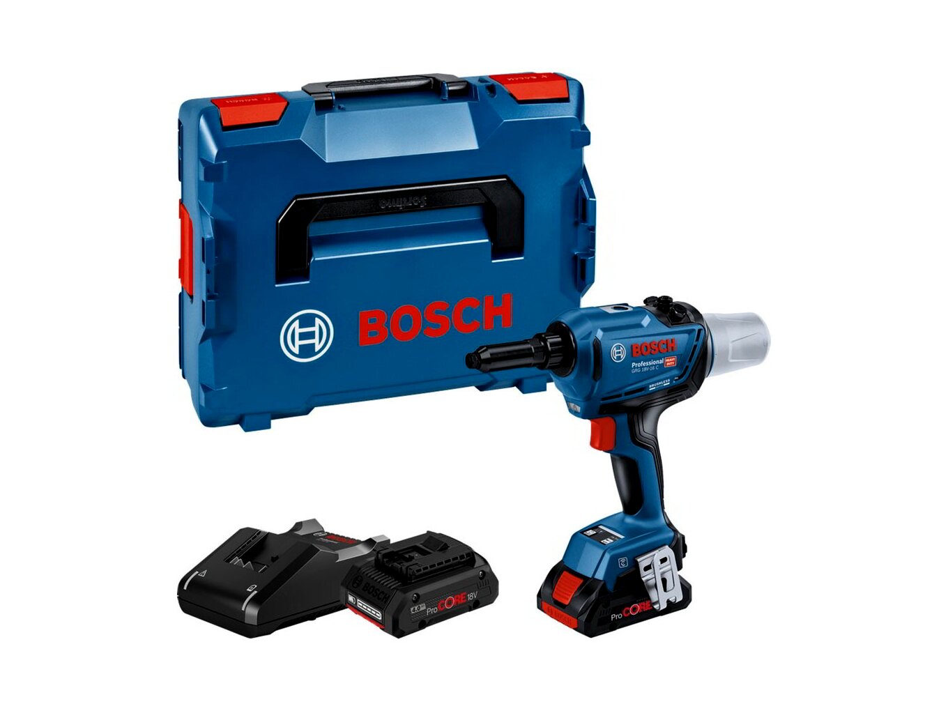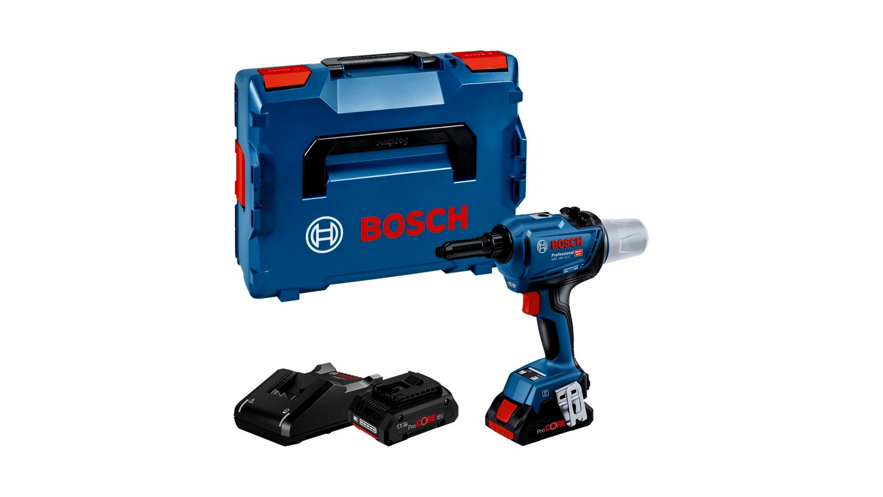 A nagy teljesítményű, akkus GRG 18V-16 C Professional popszegecselő korlátlan mobilitást biztosít, a pneumatikus szerszámokhoz tartozó kábelek és extra felszerelések nélkül. Egyszerűbb üzemelése és kevesebb karbantartása révén költséghatékonyabb is. Ez a popszegecselő ugyanolyan erős, mint egy pneumatikus szerszám, és nagy igénybevétel esetén könnyedén húzza ki a 3 mm és 6,4 mm közötti átmérőjű rozsdamentes acélszegecseket - és mindössze egy akkumulátortöltés szükséges több mint 1000 szegecs rögzítéséhez. A felhasználók személyes preferenciáiknak megfelelően választhatják az automatikus vagy a kézi funkciót. A kevesebb állásidő érdekében pedig a Bosch alkalmazással való kapcsolódás biztosítja, hogy a szerszám karbantartása és a munkavégzés a megfelelő ütemben haladjon. Ez a nagy teljesítményű popszegecselő a rugalmasság és a gyorsaság érdekében az OEM-gyártásban, például a fűtés, szellőzés és légkondicionálási munkáknál vagy az autóiparban, valamint az építőipari és szerelési munkáknál, beleértve a homlokzati munkákat és a tetőfedést, kiváló eredményeket biztosít. 3 mm és 6,4 mm közötti átmérőjű szegecseket húz ki különböző anyagkból.
