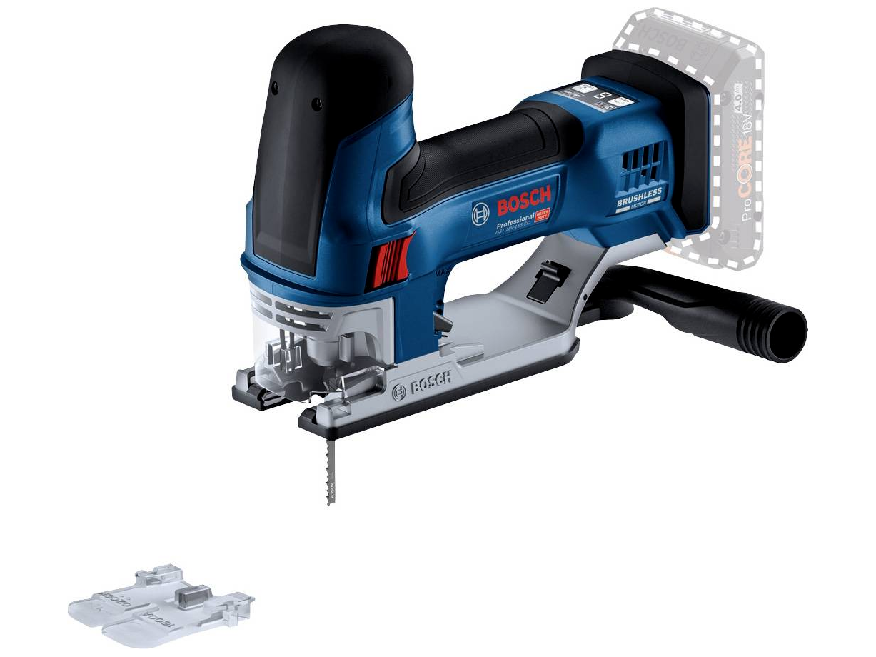 A legigényesebb vágások tökéletes elsajátítása bármilyen helyzetben – a botfogantyúval. Ergonomikus kialakítás: 360°-os megfogási lehetőséggel a tökéletes szerszámkezelés érdekében – még fejjel lefelé fűrészelve is. Tökéletes pontosság: a fűrészlap-vezető megakadályozza, hogy a fűrészlap meghajoljon, még kis íveken is. A nagyméretű fűrészlap-kidobó kar, az ejtésgátló funkció és a külső porelszívás jobb egészségvédelmet és nagyobb biztonságot nyújt a felhasználó számára.