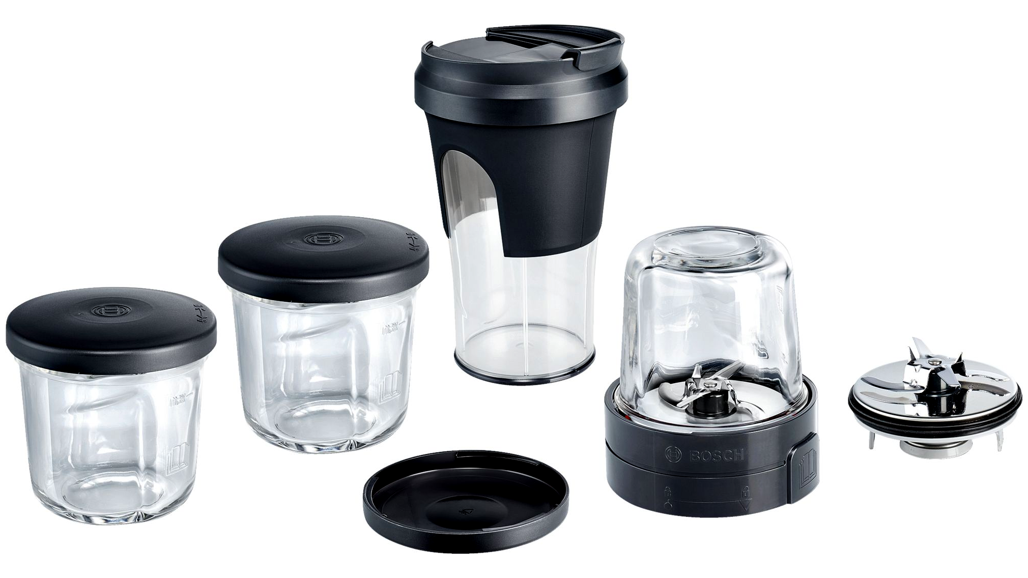 - Kompakt, sokoldalú daráló szett 5 az 1-ben funckcionalitással: őrlő, aprító, turmix, tároló és ToGo megoldás