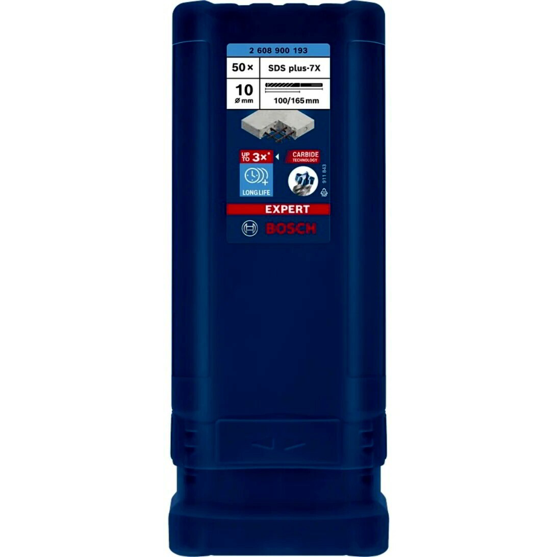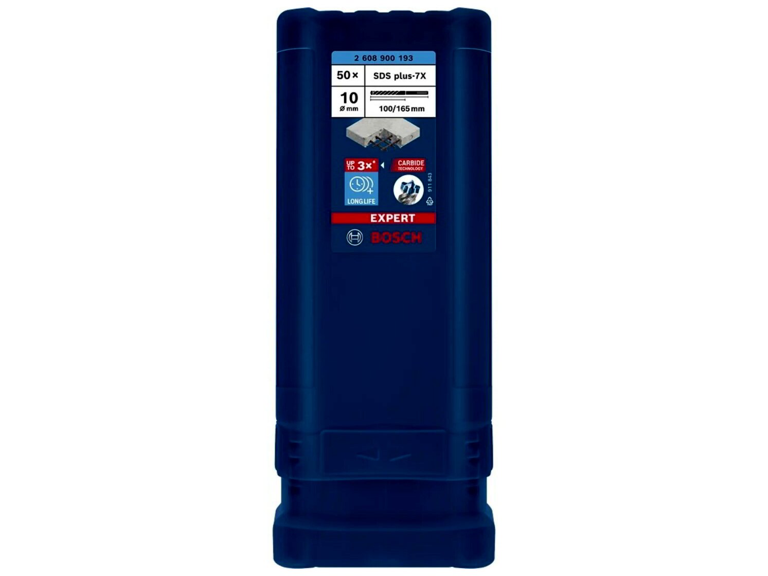 A Bosch Expert SDS-plus-7X fúrószár 10 mm-es átmérővel és 50 darabos kiszerelésben érhető el. Az őrlési tervezésű, széles spirálos csatornák biztosítják a hatékony porelszívást, csökkentve ezzel a szerszám kopását.