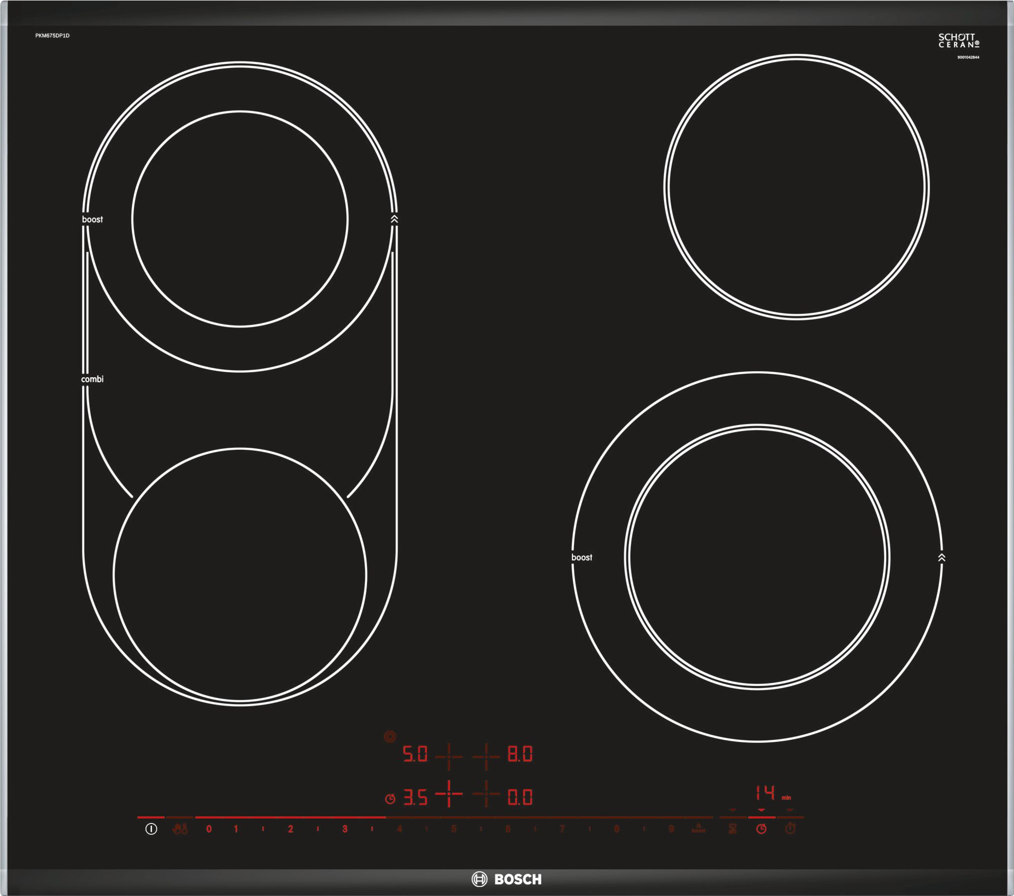 - CombiZone: nagyobb flexibilitás két főzőzóna összekapcsolásával a sütőkhöz és hasonló edényekhez.