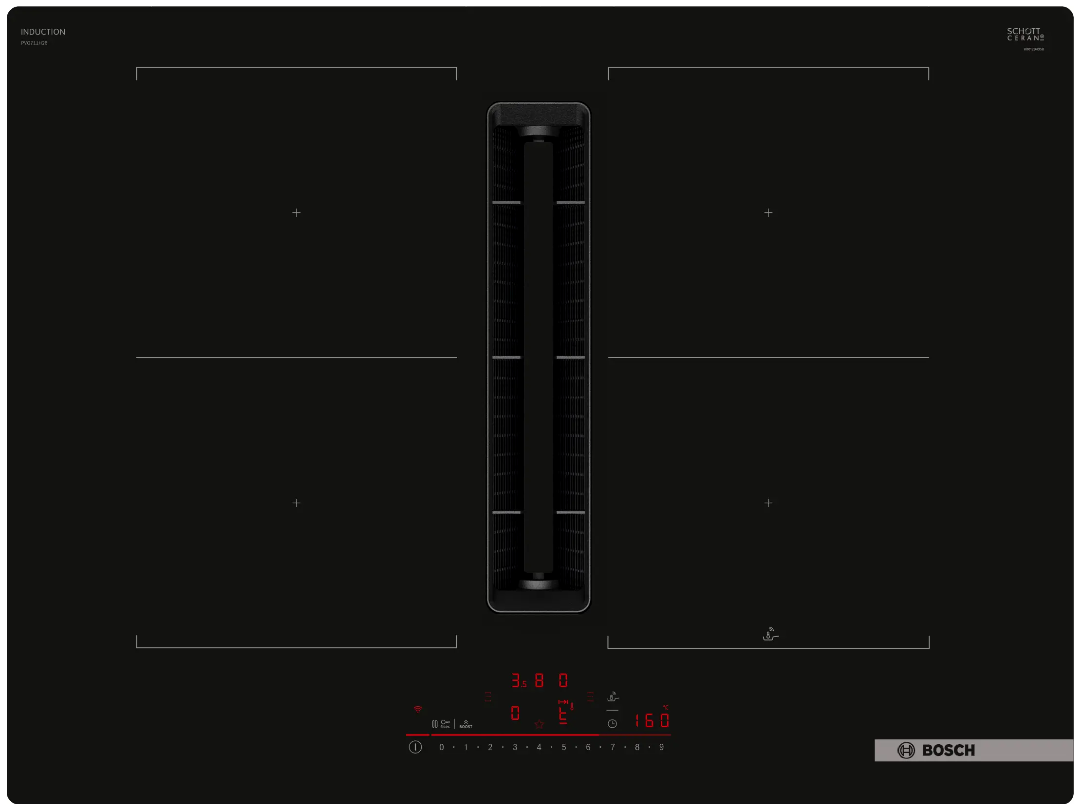 Bosch PVQ711H26E Beépíthető 4 Zónás Indukciós Főzőlap 7400 Watt - Fekete