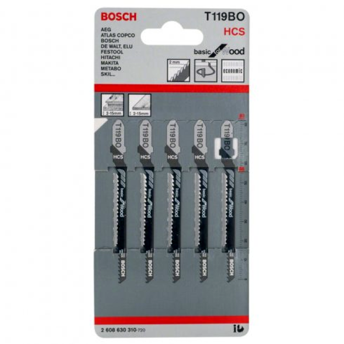 A Bosch T 119 BO Basic for Wood szúrófűrészlap íves vágásokat végez a fában. A maratott, hullámos fogak ideálisak a különleges követelmények nélküli vágásokhoz. A keskeny szénacél penge puhafához és más, nem koptató hatású faanyagokhoz készült, és íves vágásokhoz optimalizált. A finom fogazás lehetővé teszi a vékony faanyagok széles skálájának vágását. A T 119 BO Basic for Wood a T-nyéllel ellátott fűrészekhez alkalmas.