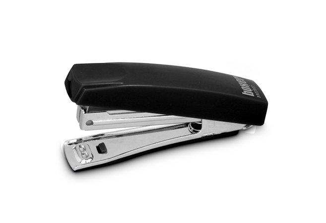 kisméretű, fémszerkezetű tűzőgép műanyag takaróelemekkel ergonomikus nyomófelület használható kapocsméret: No.10 tűzési mélység: max.50 mm egyszerre összetűzhető lapok száma: max.10 lap