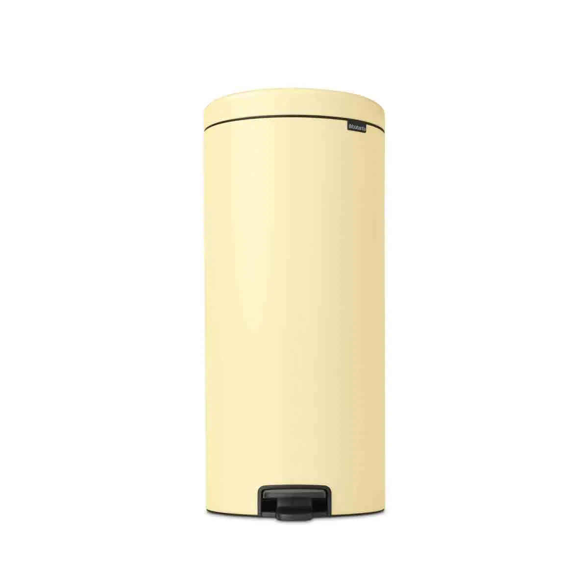 A Newicon 30 Literes Pedálos Fém Szemetes a Brabantia kínálatából a praktikum és az esztétika tökéletes ötvözetét képviseli. A modern sárga szín nemcsak hangulatossá varázsolja a helyiséget, de a kiváló minőségű anyagok és az intuitív kialakítás révén hosszú élettartamot és kényelmes használatot biztosít.