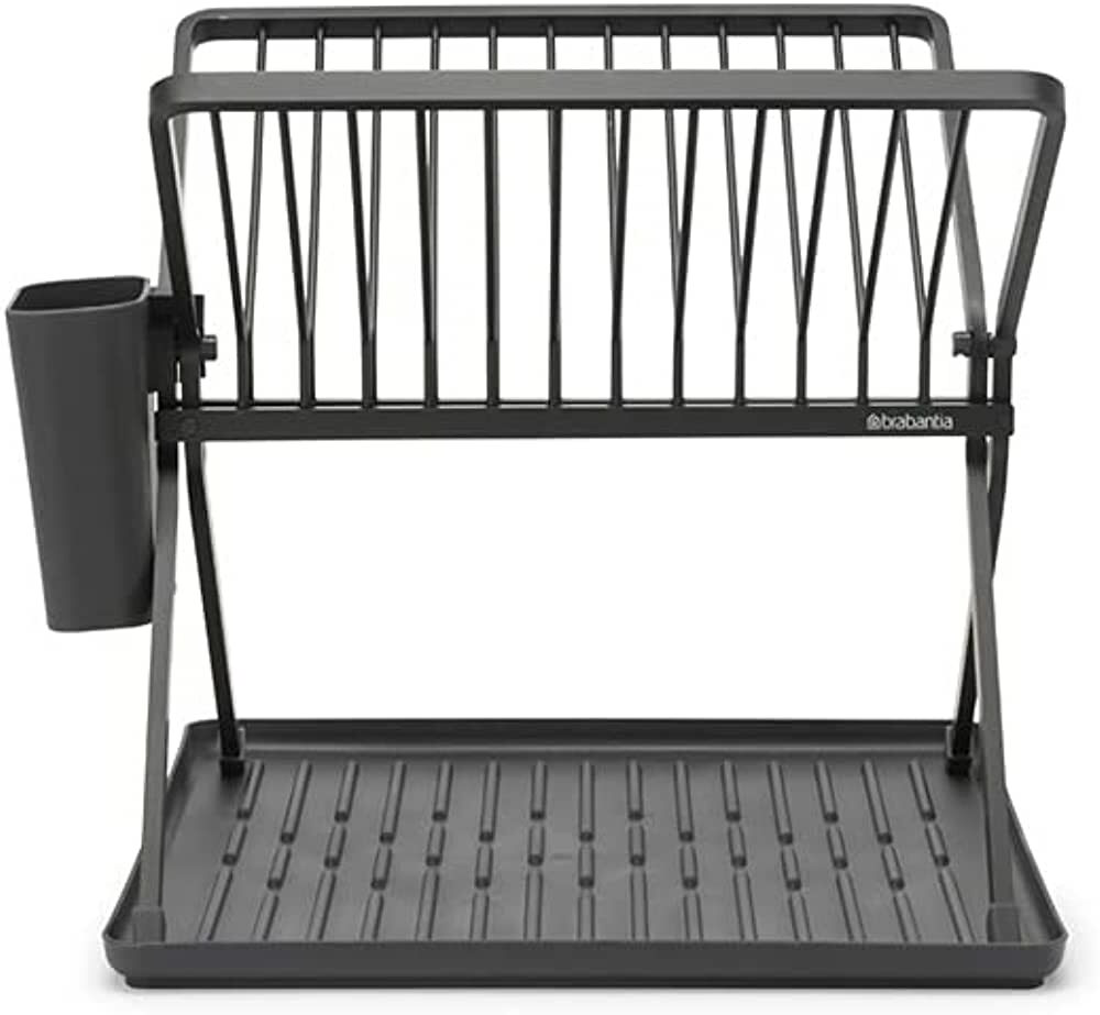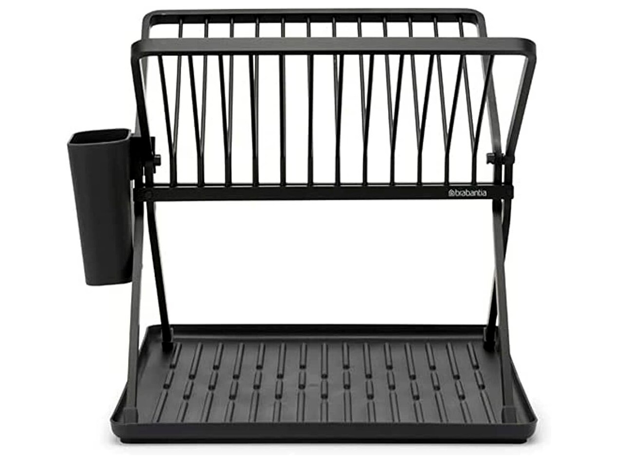 Az edények nem mosogatják el magukat - de természetesen megszáradnak! Ez a Brabantia összecsukható, csepegtető tálcával ellátott edényszárító állvány boldogan elfér akár 13 tányér vagy edény, serpenyő és üvegáru. Az evőeszközök és evőeszközök szárítására szolgáló kosár kivehető, így az állvány könnyen összecsukható és rendbe tehető. Elég szép ahhoz, hogy állandó helyet kapjon a konyhájában, ugyanakkor nagyon kompakt módon tárolható - egy hintaszerű állvány!