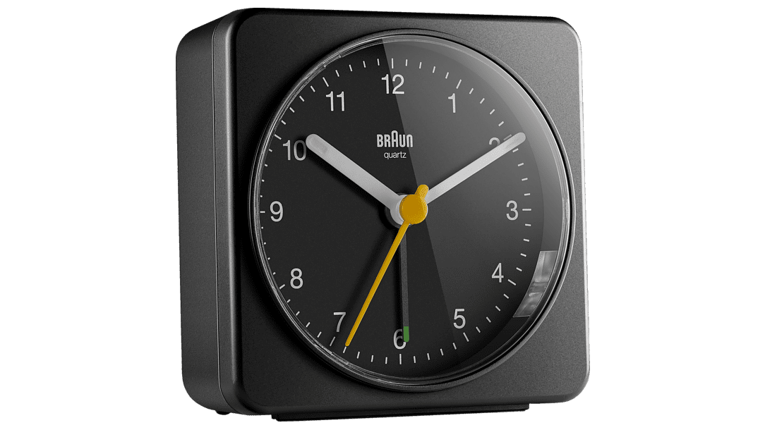 Ez a Braun klasszikus analóg ébresztőóra könnyen leolvasható tárcsaelrendezéssel rendelkezik, és az ikonikus sárga másodpercmutatóval rendelkezik, amely a Braun díjnyertes tervezési történetének szinonimája. A kvarc rendszernek köszönhetően a mutatók mozgása pedig csendes és pontos.