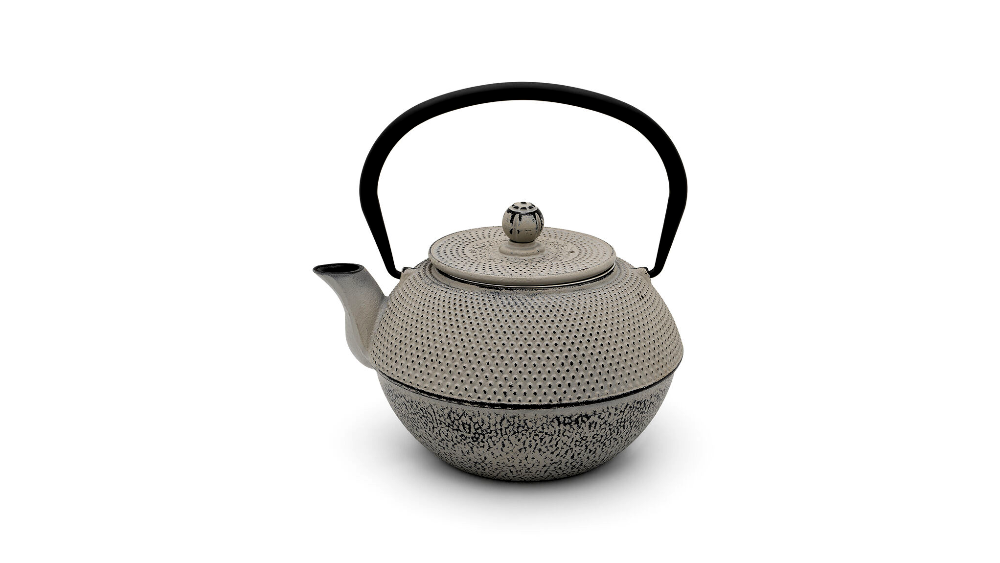 Jang teáskanna betonszürke színben. Szegecselt textúrával és zománcozott belsővel rendelkezik. Az öntöttvas teáskanna űrtartalma 1,1 liter.