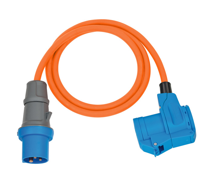 - CEE adapterkábel kempingekhez és lakókocsikhoz CEE szögletes csatlakozóval + földelt érintkező kombinált aljzattal, ideális robusztus és hosszú távú kültéri használatra.
