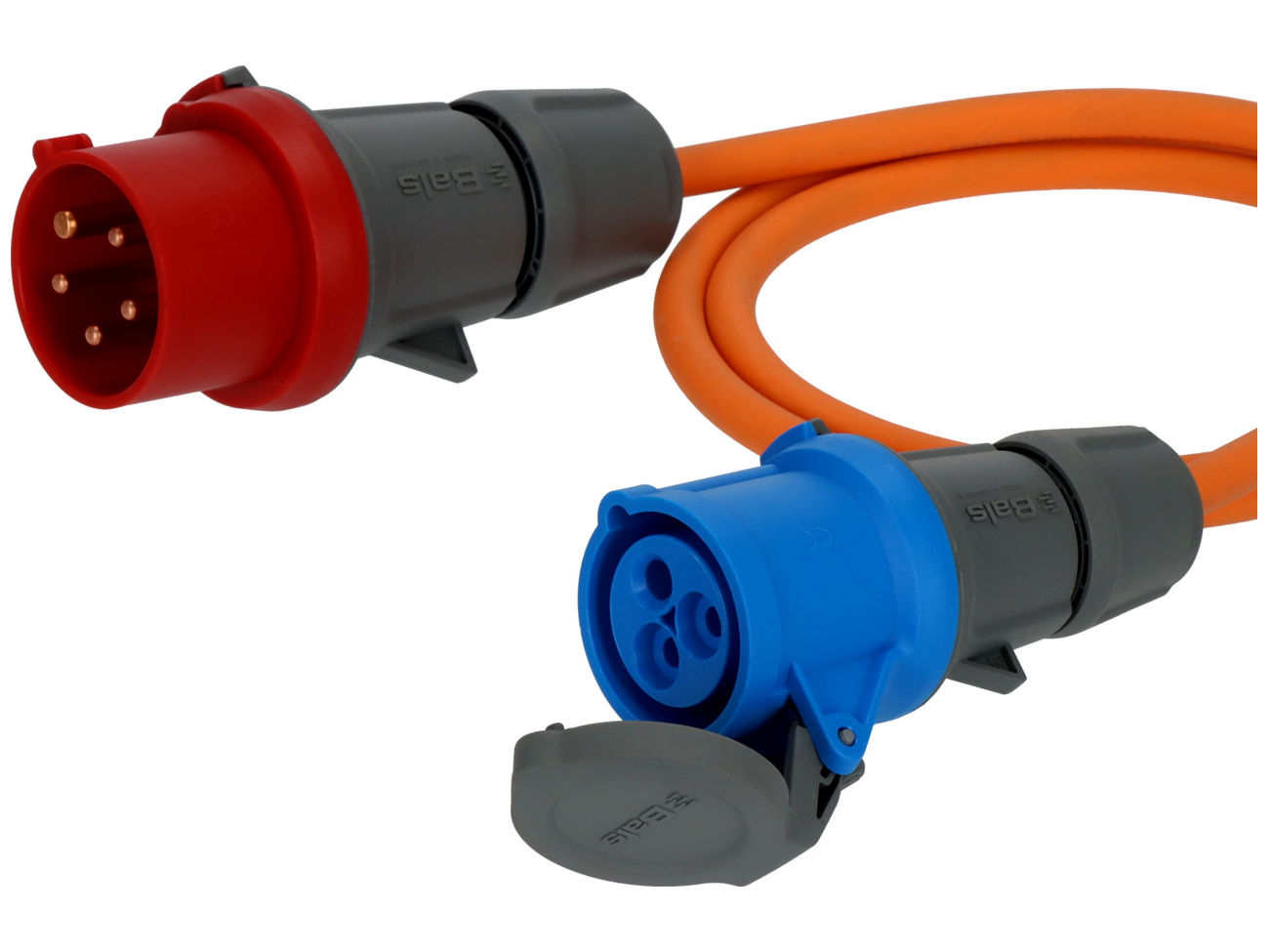 - A narancssárga „Made in Germany” adapterkábel tökéletes CEE adapter minden kereskedelmi forgalomban kapható nagyfeszültségű aljzathoz