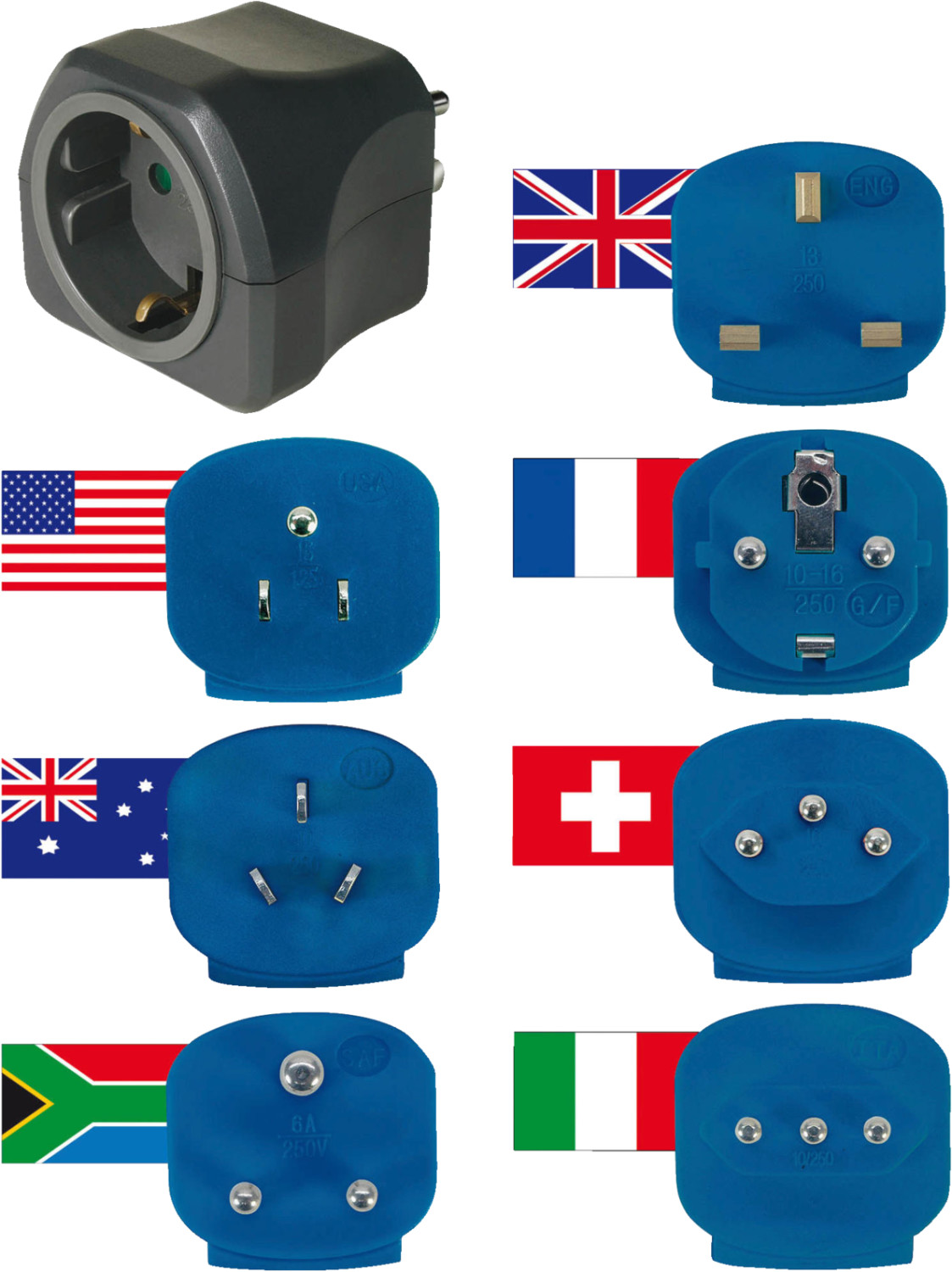 Utazási adapterkészlet 10A biztosítékkal