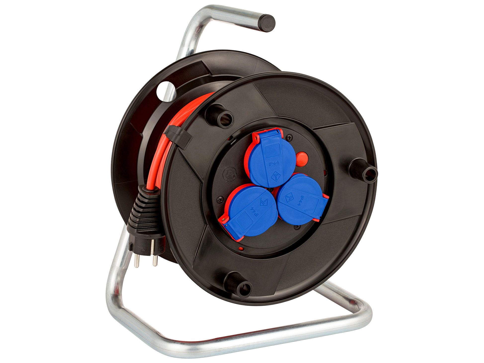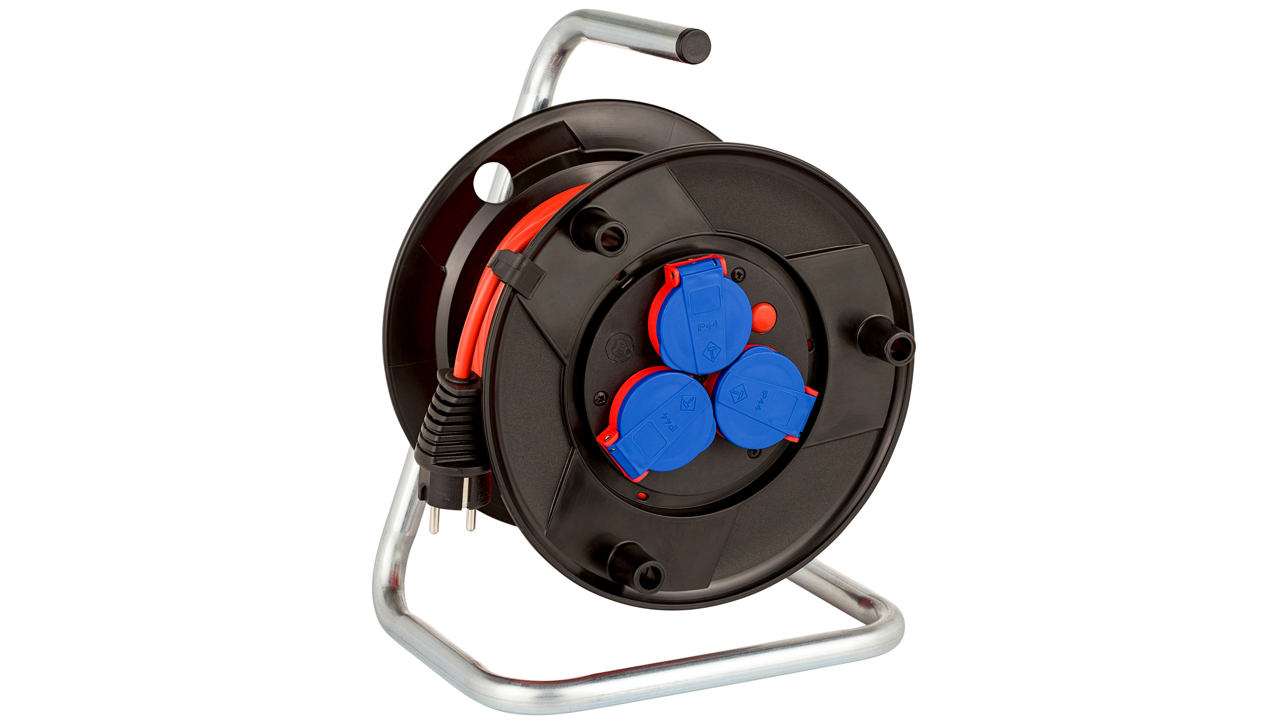 - Kábeldob 20 méteres kábelhosszal (H05VV-F3G1.5), ami alkalmas ideiglenes kültéri használatra (IP44)