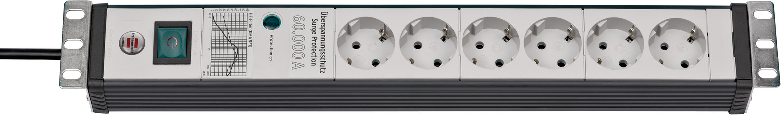Brennenstuhl Premium-Line Túlfeszültség védő elosztó 6 aljzatos 3m - Szürke/Fekete