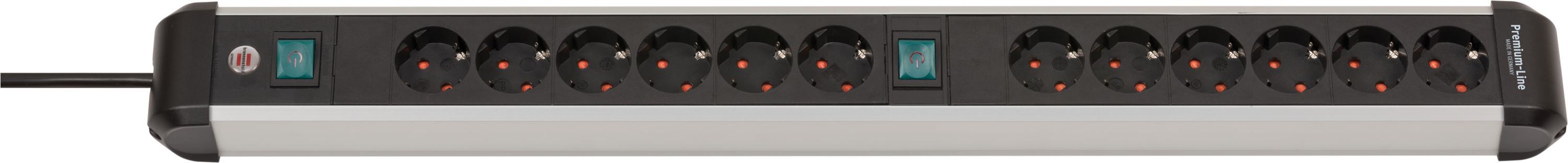 A 12 aljazotos Premium-Alu-Line hosszabbító vezeték 2x 6 utas kapcsolható aljzattal, vékony kialakításban optimális tápforrásként szolgál az otthoni irodában vagy a munkahelyen. A megvilágított biztonsági kapcsolóval (kétpólusú) és helytakarékos, 45°-os elrendezésű aljzatokkal ellátott elosztó az innovatív szerelési koncepciónak köszönhetően falra vagy akár asztallábra is felszerelhető. A megnövelt érintésvédelemmel ellátott konnektor a következő tulajdonságokkal is lenyűgöz: