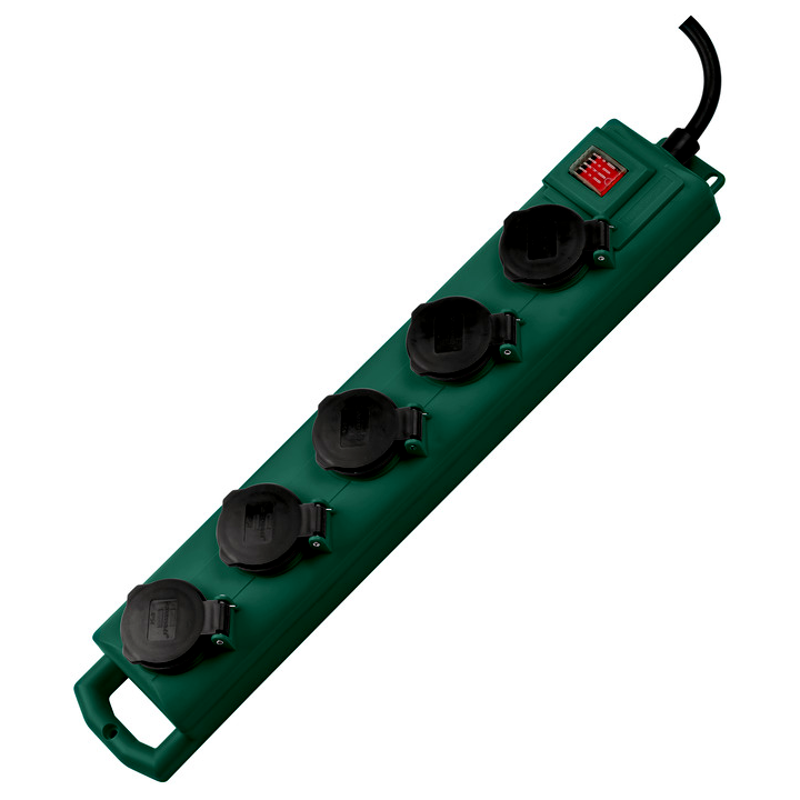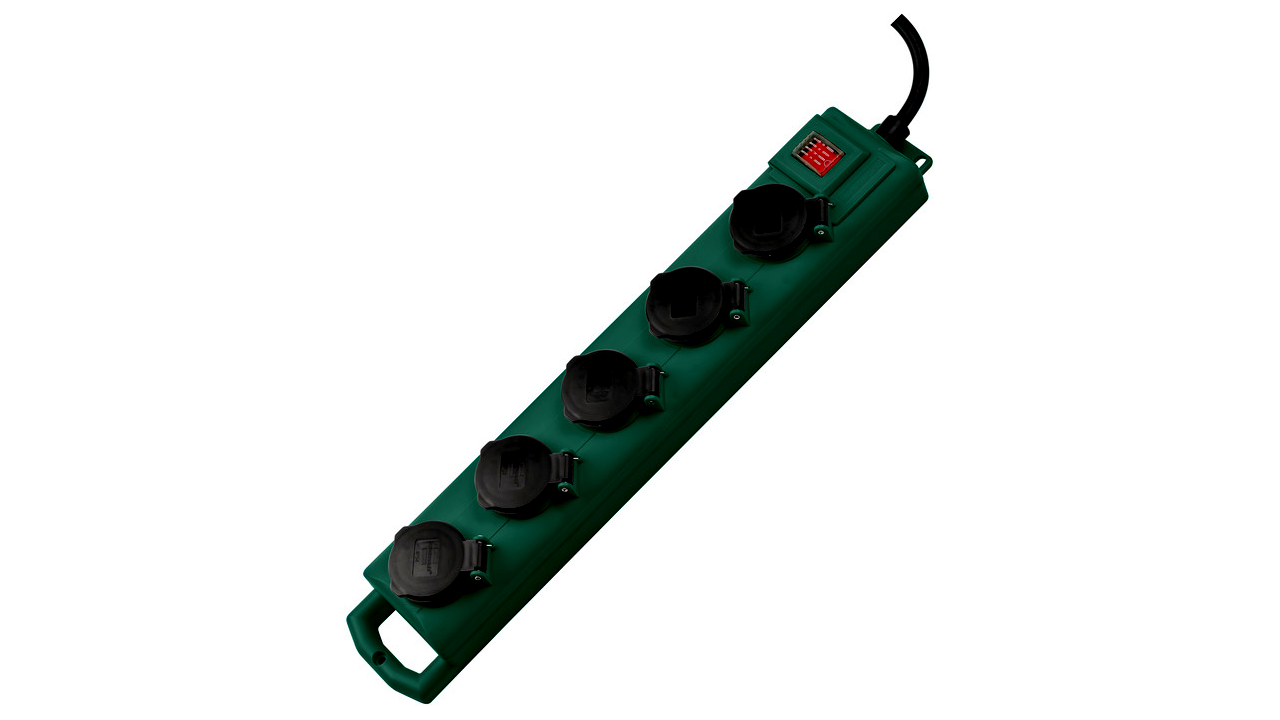 - 5 aljzatos kültéri elosztó önzáró fedelekkel és praktikus 45°-os elrendezésű aljzatokkal