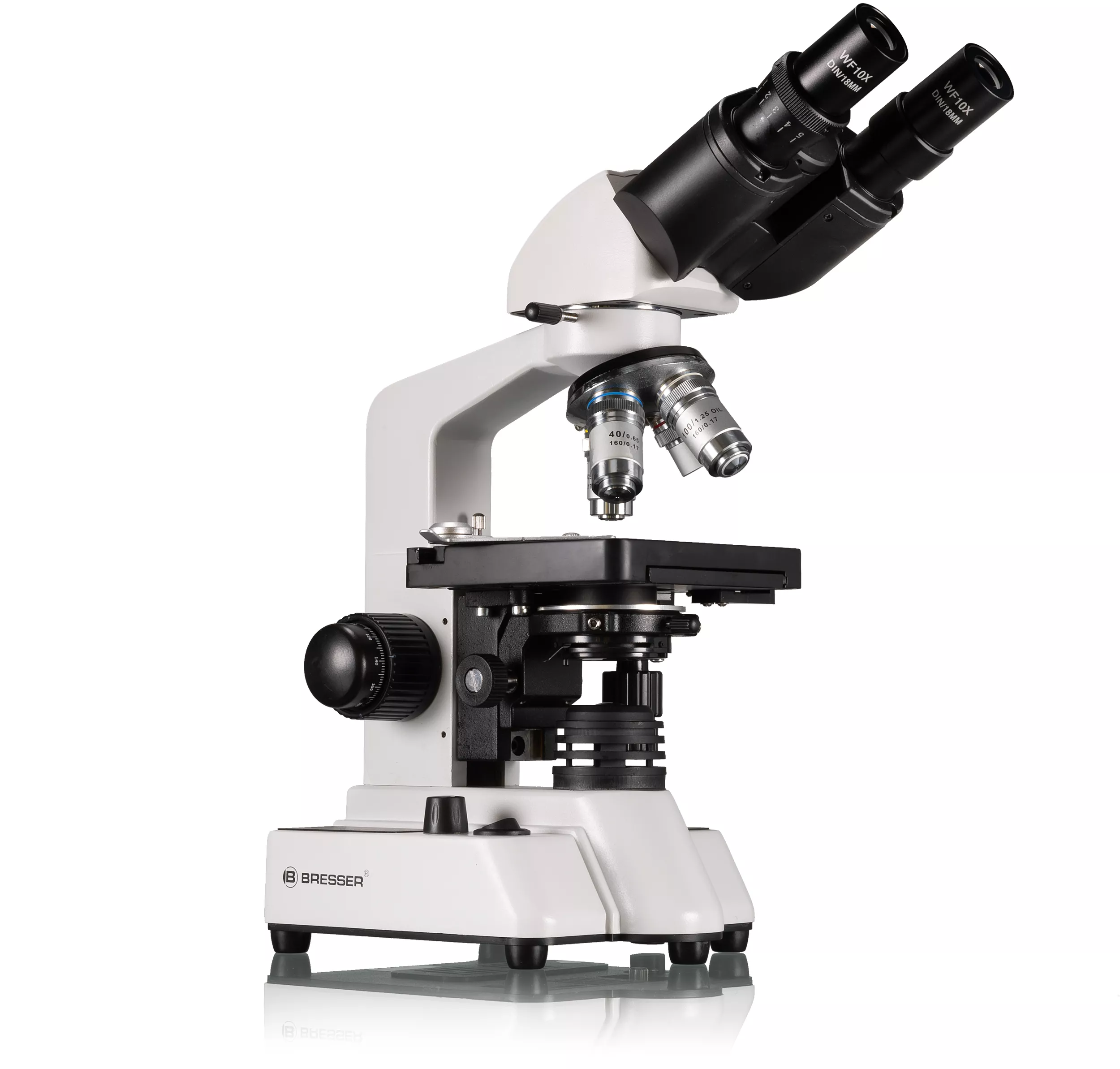 A Bresser Researcher II 40-1000x binokuláris mikroszkóp magast teljesítményű, fedezettfényű mikroszkóp, amely széles nagyítási tartománya és masszív fémháza révén megfelel a legmagasabb igényeknek is. A négy objektív és cserélhető szemlencsék segítségével 40x-től 1000x-ig terjedő nagyítás érhető el.