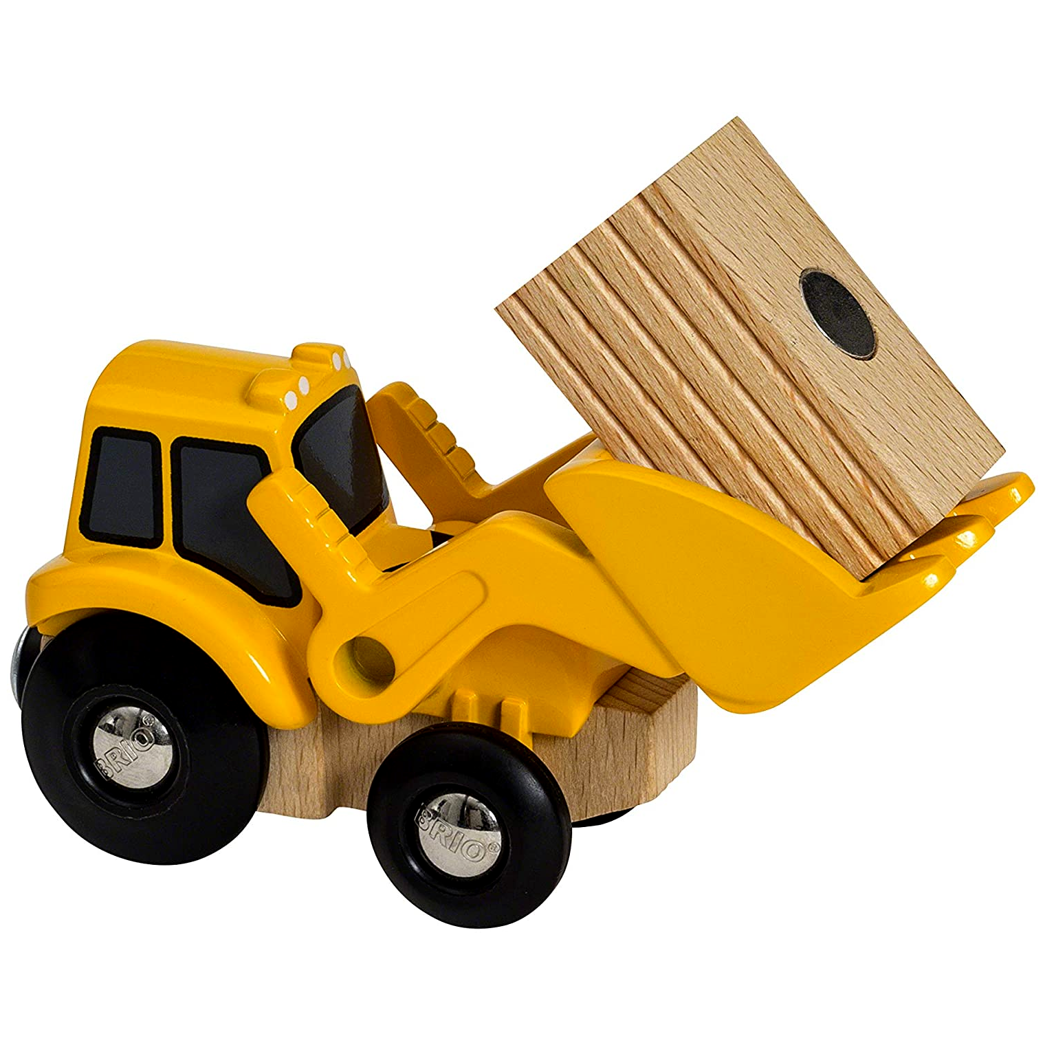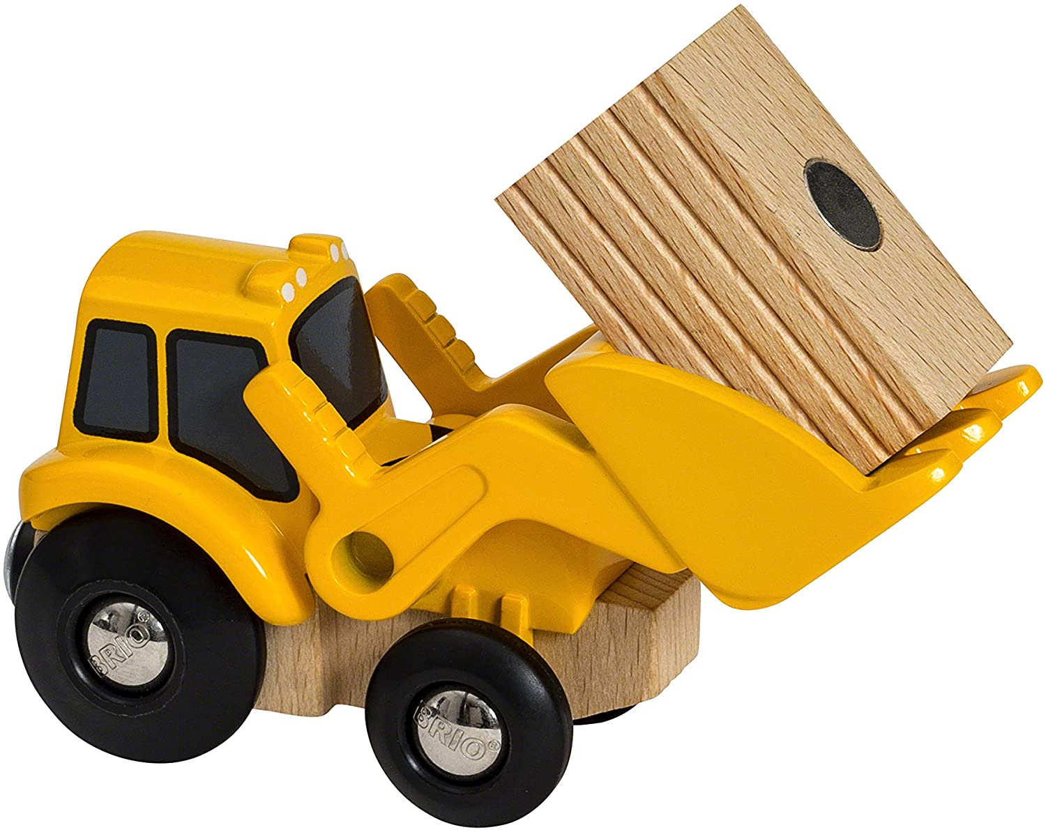 Könnyű emelés és rakodás: A rakodógép a legnehezebb munkákhoz készült. Megdöbbentő sárga színű és kiegészül egy egyszerű emelési és rakodási fogantyú karral - szórakoztató működés, amikor felveszi és elviszi a fadarabot. Miután berakodott, vigye a rakományát oda, ahova kell mennie. A fadarab fémcsappal rendelkezik, így a BRIO World daru mágneses funkcióval vagy más emelő- és rakományjátékokkal könnyű felvenni a rakományt.
