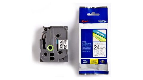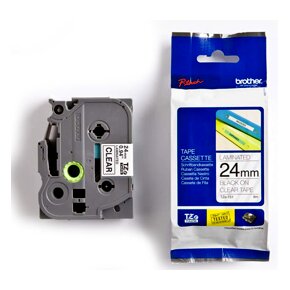 24 mm széles, 8 m hosszú, átlátszó alapon fekete színű tartós laminált feliratokhoz nyomtatószalag 24 mm széles, 8 m hosszú, átlátszó alapon fekete színű tartós laminált feliratokhoz nyomtatószalag