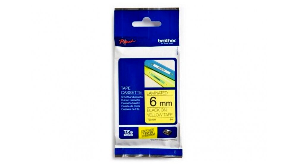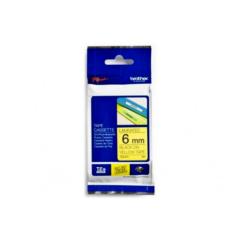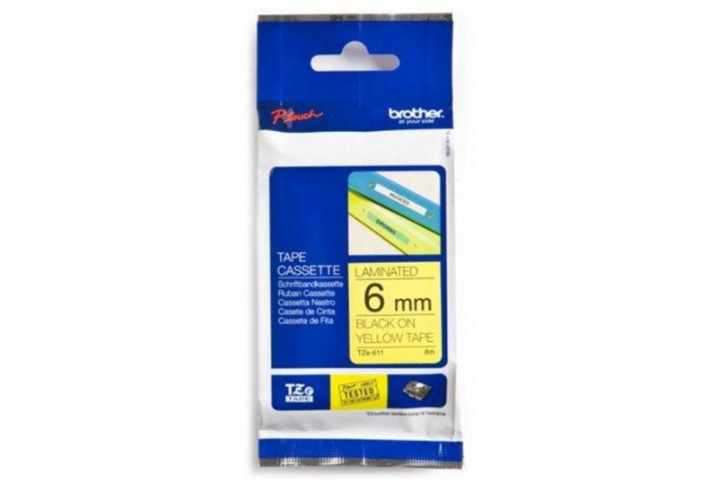 Brother Festékszalag TZE611 P-Touch, 6 mm sárga alapon fekete