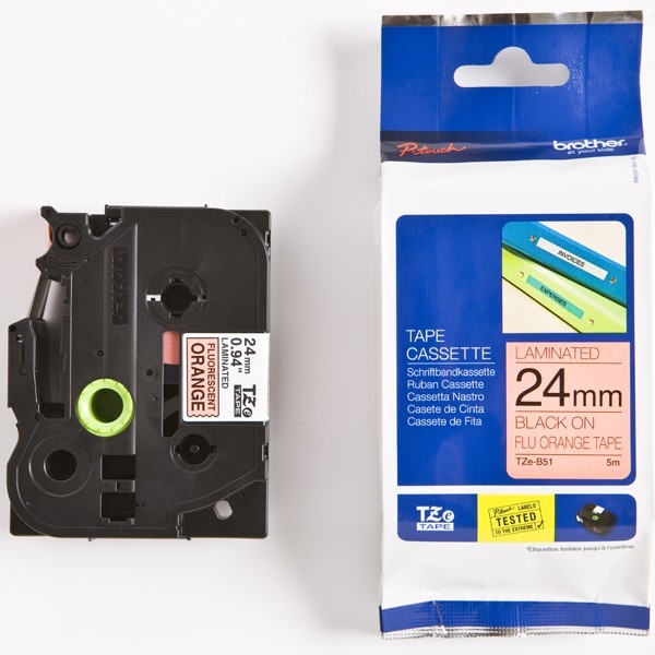 Brother TZEB51 P-Touch Feliratozógép szalag 24 mm narancs alapon fekete, fluoreszkáló
