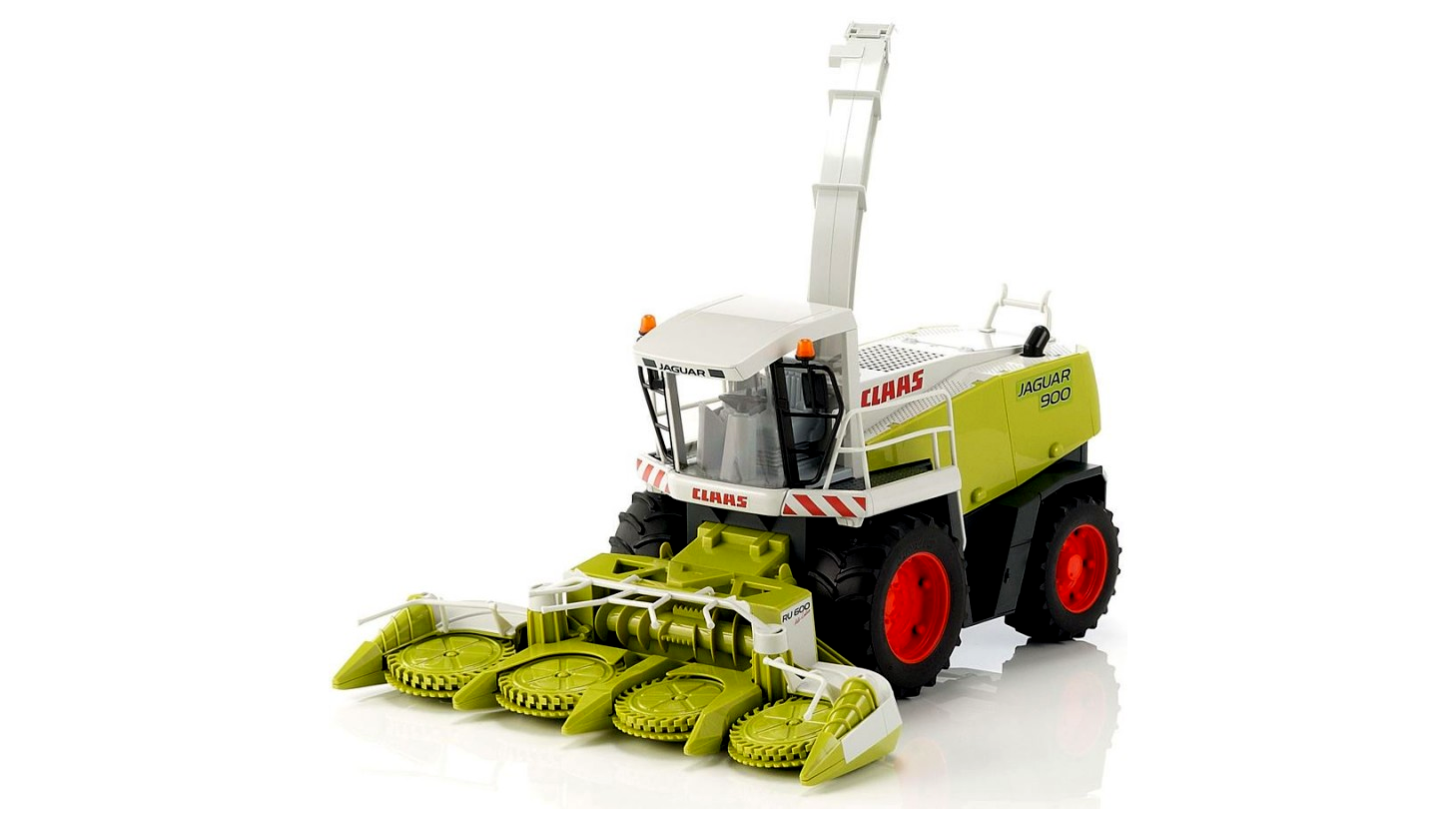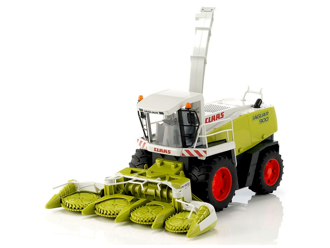 A Claas Jaguar 900 szántógép az eredeti eredeti példánya, amely valójában lenyűgöző kombájn az európai betakarítási technológia piacvezetőjétől. A modellt egy kukoricafejléc jellemzi, amely négy meghúzott pengével rendelkezik. Annak érdekében, hogy a funkció még egyenetlen játszótéren is garantálható legyen, a kukorica fejléc oszcilláló felfüggesztéssel rendelkezik, és a középső helyzetben egy torziós rugóval stabilizálódik. A kukorica fejlécét is levehetjük, ami lehetővé teszi a megjelölt szaggató nézetét. Mindkét külső behúzó lapát fel van hajtva, és az egész kukoricafej felemelhető az utakon történő szállításhoz. A modell lehetővé teszi a nyitott ajtónyílásokat is, amelyek lehetővé teszik a technológia és a hajtószíj megtekintését. A szembetűnő siló kifolyó az eredetihez hasonlóan sokféleképpen állítható. Minden terepen rezgő tengely, a futófelület gumiabroncsai és egy részben üvegezett vezetőfülke egészíti ki a képet. Ahhoz, hogy a játékot szórakoztassuk, a szántógépet kettős abroncsokkal lehet felszerelni [cikk. szám: 02013] (nem tartalmazza).