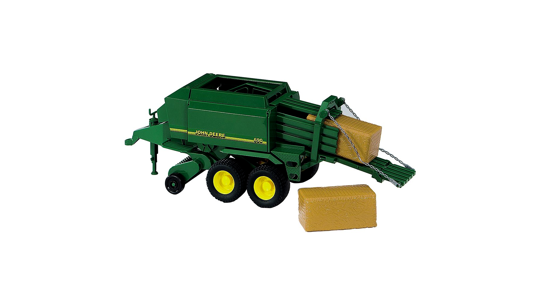 A leeresztő stabilizátor biztosítja a John Deere nagy bála sajtóbiztosítását. A nagy bála présszel kinyitható zsinórtartók vannak. A nyomószerkezettel ellátott szervizcsap nyitható. A szénafúrást hajtás üzemmódban hajtják végre, ahol két széna bálát automatikusan szállíthatunk a kisülési csatornára. A széna bála csúszkát két szakaszban fel lehet billenteni a láncokkal. A John Deere nagy bálázó prés alkalmas a Profi sorozat összes traktorjára (nem tartozék).