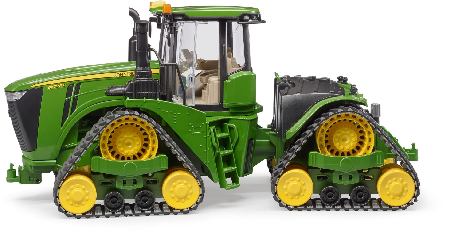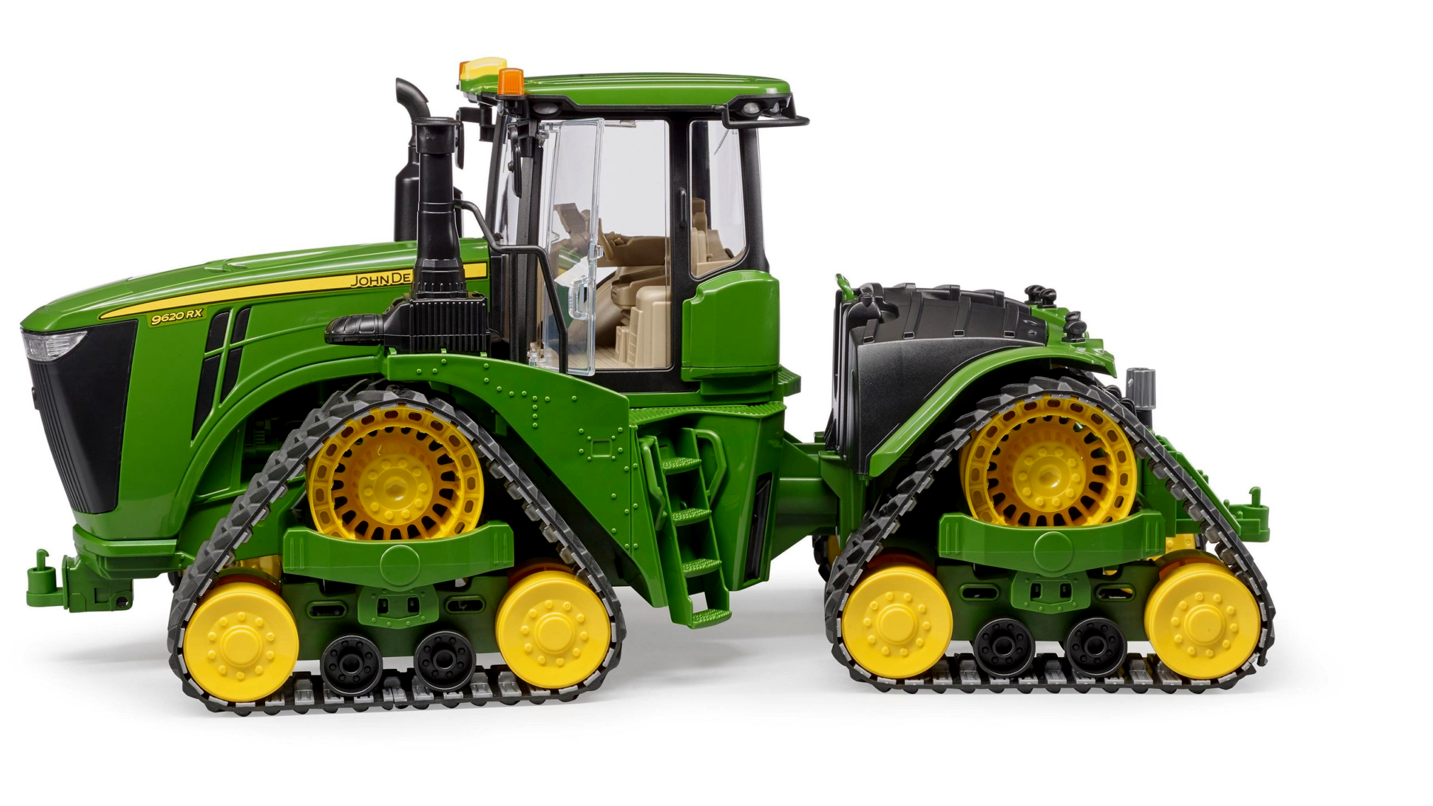 Mivel a modern gazdaságok iránti igény egyre növekszik, manapság több, mint fontos a gép teljesítményének növelése. A 9620RX a John Deere legerősebb és legnagyobb lánctalpas traktorja. A legfeljebb 670 LE teljesítményű motor és a négy lánctalpas meghajtó köszönhetően lenyűgöző vontatóerővel és a talaj lehető legjobb védelmével egyidejűleg ez a jármű a tökéletes partner, ha nagy terhelésű húzógépeket használ, pl. szántás és varrás kombinációk szükségesek. Ez a lenyűgöző traktor, melynek különös figyelmet fordít a részletekre, most már 1:16-as skálán is elérhető a BRUDER tartományban. Csakúgy, mint az igazi, a modell a nemrégiben kifejlesztett lánctalpas meghajtót, valamint az off-road artikulált kormányzást is tartalmazza. A fülkében egy nyitó ajtó található, és a lenyűgöző motorháztető felfelé is hajtogatható, hogy bemutassa a masszív motort. A magasság-állítható emelőszerkezettel rendelkező vontató tengelykapcsolóhoz a BRUDER mezőgazdasági termékcsaládjának számos tartozéka alkalmas.