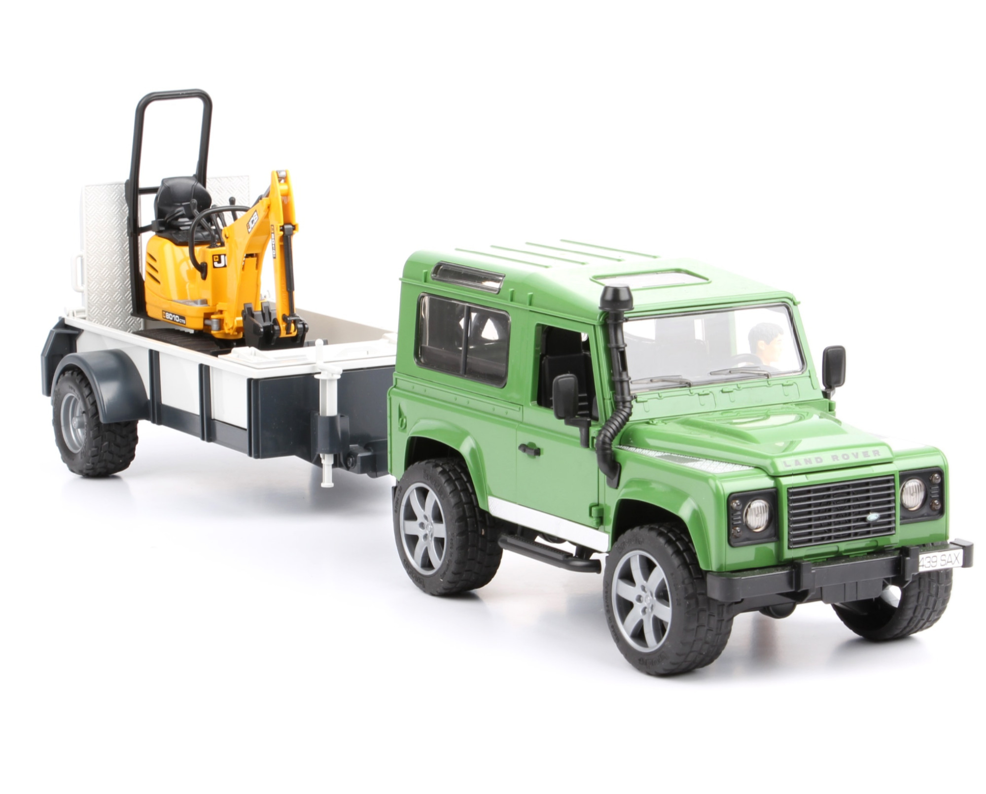 Hihetetlen off-road minőség és időtlen Land Rover design kombinálva az új bworld sorozat JCB igazi aprólékos kotrójával - csak a kis építőipari munkások számára. Meglepő részleteinek köszönhetően, beleértve a motorháztető felemelt szerkezeti lemezét és számos teljesen működőképes tulajdonságát, az általunk létrehozott modell mind a Land Rover márka rajongóit, mind mindenkit, aki nagy figyelmet fordít a részletekre. A hátsó és az oldalsó ajtók kinyithatók és a hátsó ülések kihúzhatók. A hozzá tartozó mikro-kotrógép is meglepően igaz a részletekre. A bworld sorozat minden alakja biztonságosan illeszkedik az üléshez. A forgatható alváznak köszönhetően a munka az építkezés minden sarkában elvégezhető. Továbbá egy merev vonórúd pótkocsi, amely hátsó ajtóval és profilos gumiabroncsokkal rendelkezik.