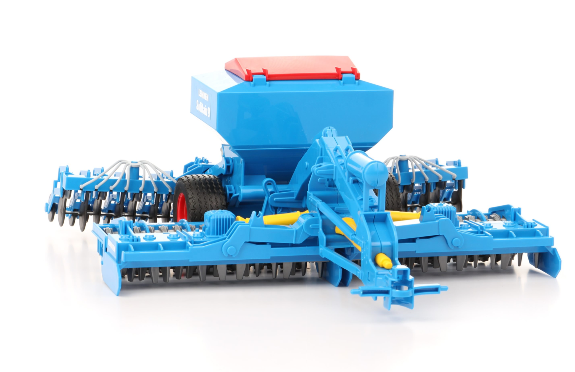 A LEMKEN cég széleskörű termékeket kínál a talajkezeléshez, a vetéshez és a növényvédelemhez. Ugyanolyan sok talajkezelési folyamat létezik, mint a különböző típusú talajok. A talajkezelés gyorsabbá és hatékonyabbá tétele érdekében a gazdálkodók olyan kombinált eljárásokat alkalmaztak, amelyek kiváló eredményeket eredményeztek még kevésbé tökéletes időjárási körülmények között is. Ilyen eszköz például a LEMKEN 9 Solitair 9 vetés kombinációja. Ezzel a lenyűgöző vontatott géppel a BRUDER ismét bizonyítja, hogy az eredeti high-tech járművek rendkívül vonzó játékkomponensekké alakíthatók kiemelkedő szórakoztató tényezővel. Ez a BRUDER gazdálkodási eszközeinek valóban innovatív bővítése. Ez a vontatott gép a traktor összes traktorjához és a Profi sorozatú MB Unimogs-hoz csatlakoztatható.