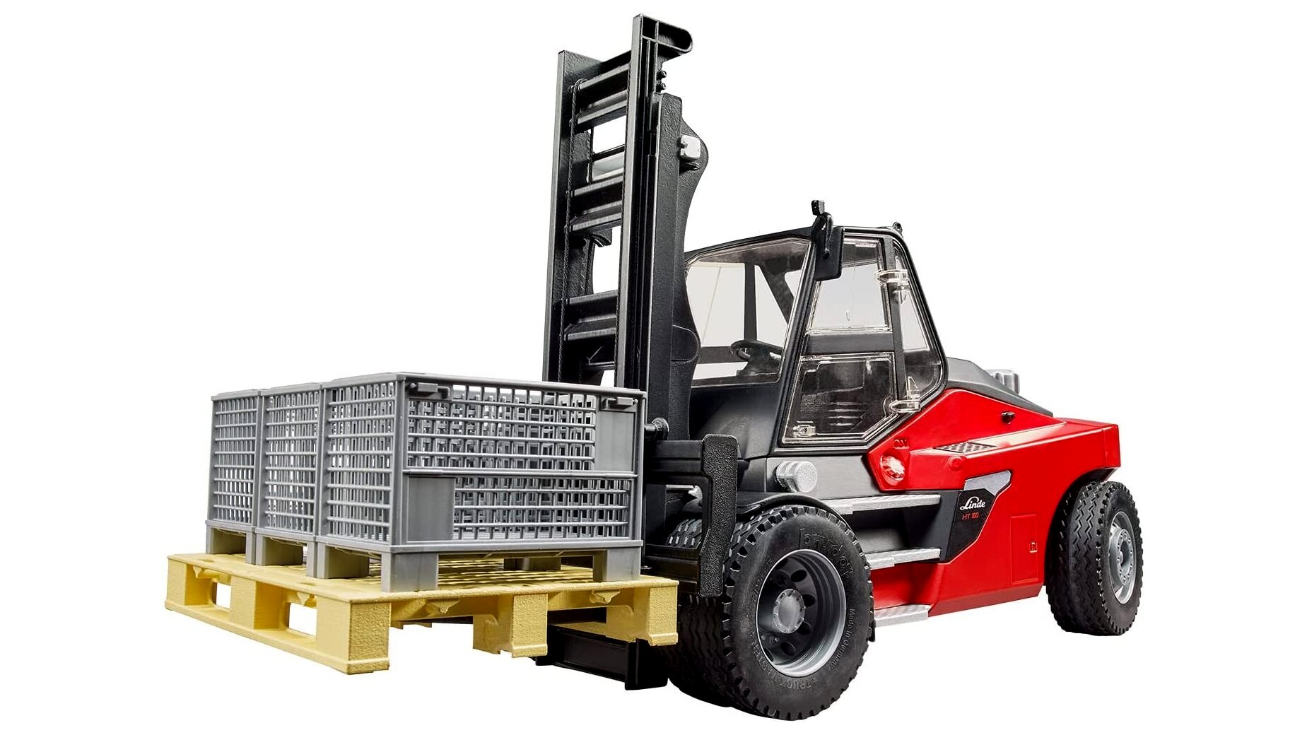 A Linde HT160 Villás emelőgép rendelkezik kettős emelőoszloppal, amelynek emelési és döntési funkciói egy kézzel vezérelhetők. A részletes konstrukció lehetővé teszi a gyerekek számára, hogy a játék könnyen irányítható legyen szűk helyeken is, akárcsak az igazi gép. Továbbá a játék szett tartalmaz egy teherbíró raklapot és három rácsos kosarat, tökéletes kiegészítők a nagyméretű rakományok szállításához.