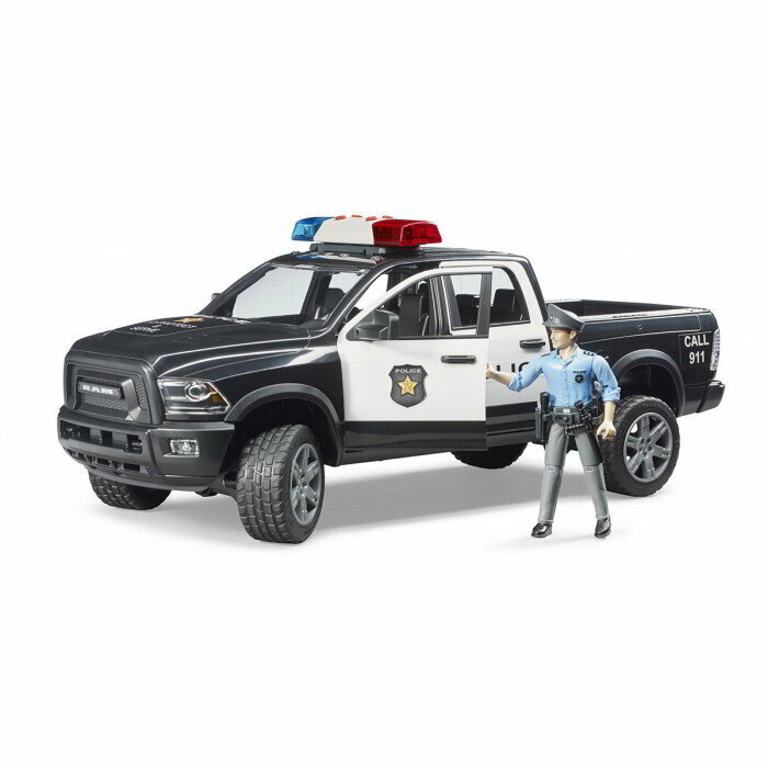 A BRUDER RAM 2500 Rendőrautó egy valósághű, négy ajtós, 4x4 meghajtással rendelkező jármű, amely nem csak a nagyvárosi környezetben, hanem az eldugott terepeken is kiválóan teljesít. A jármű előnyei között kiemelkedik a tetőn található Light & Sound modul, amely motorzúgást, rendőrségi és tűzoltósági szirénákat, Yelp-szignált, valamint automatikus kikapcsolási funkcióval rendelkező hanghatásokat biztosít.