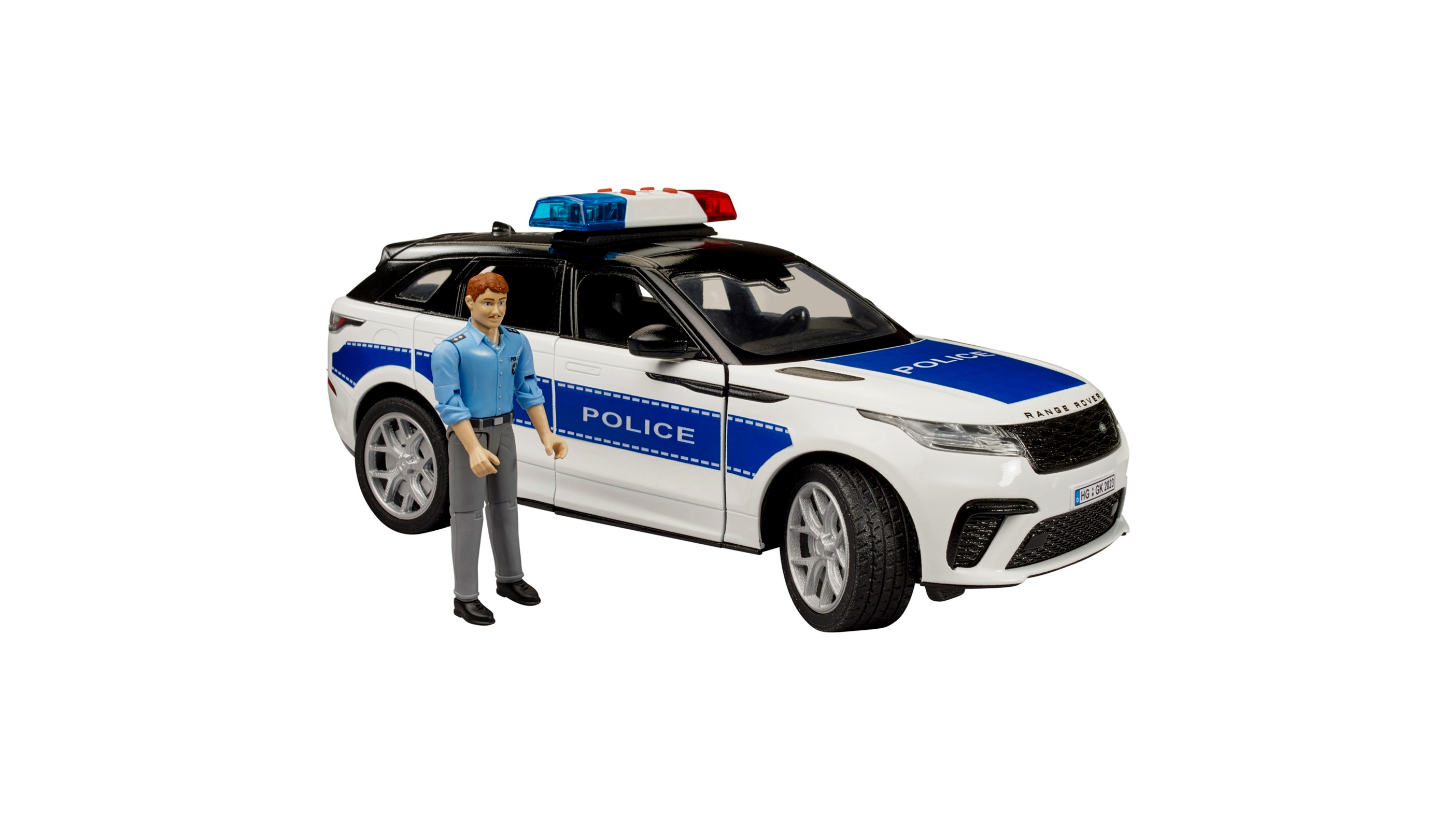 A Bruder Range Rover Velar rendőrautó a valósághű játszókészletek kedvelőinek készült, amely kiegészül egy rendőr figurával, hogy még izgalmasabbá tegye a gyermekek játékélményét.